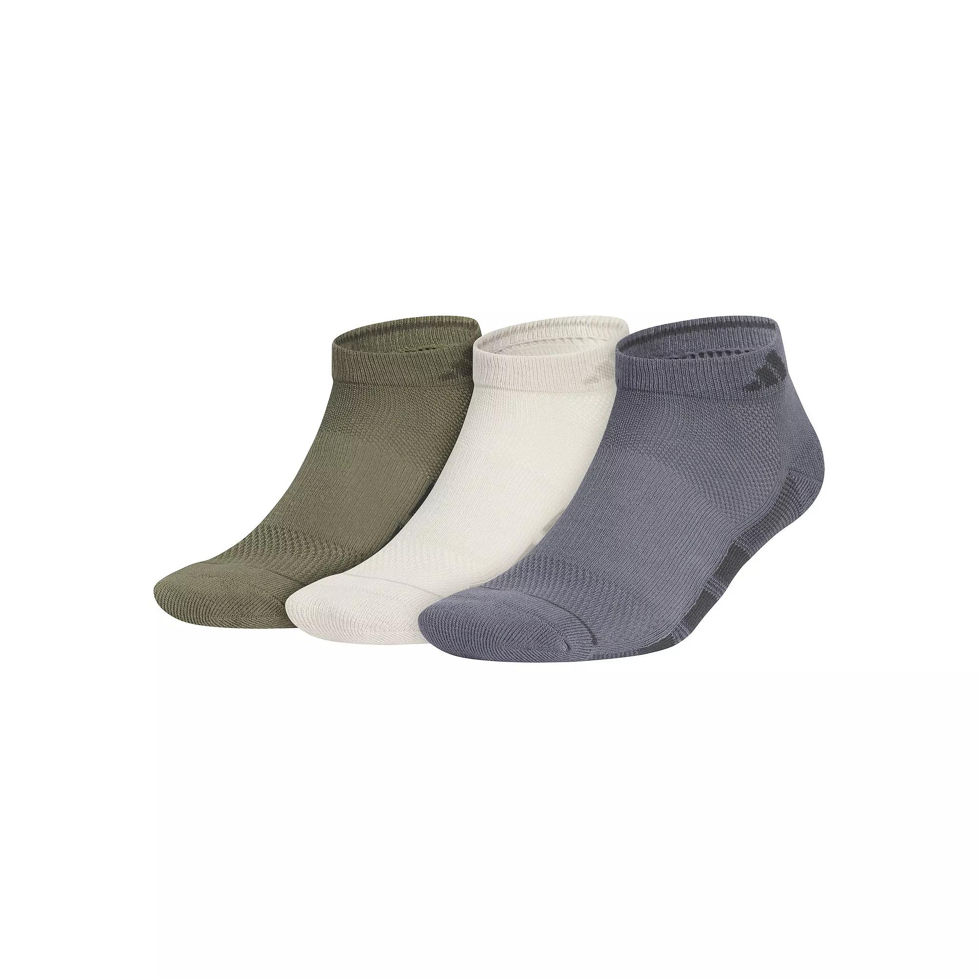 Treat your feet to a snug, supportive fit with these mens adidas low-cut socks. Light and durable, theyre great for everything from training and running to everyday wear. They have cushioned toes and heels, extra support through the arch, and mesh over the top for ventilation.Treat your feet to a snug, supportive fit with these mens adidas low-cut socks. Light and durable, theyre great for everything from training and running to everyday wear. They have cushioned toes and heels, extra support through the arch, and mesh over the top for ventilation.FEATURES Includes 3 pairs of socks Mesh on top of the foot provides breathability Enhanced arch support for secure fit Targeted cushion zones in the heel and toe for added comfort and durability Lightweight yarns and durable construction for a close fitFIT & SIZING One size fits most Low-cut silhouetteFABRIC & CARE Polyester, cotton, spandex Machine wash Imported Size: 6-12. Color: Olive Grey. Gender: male. Age Group: adult.
