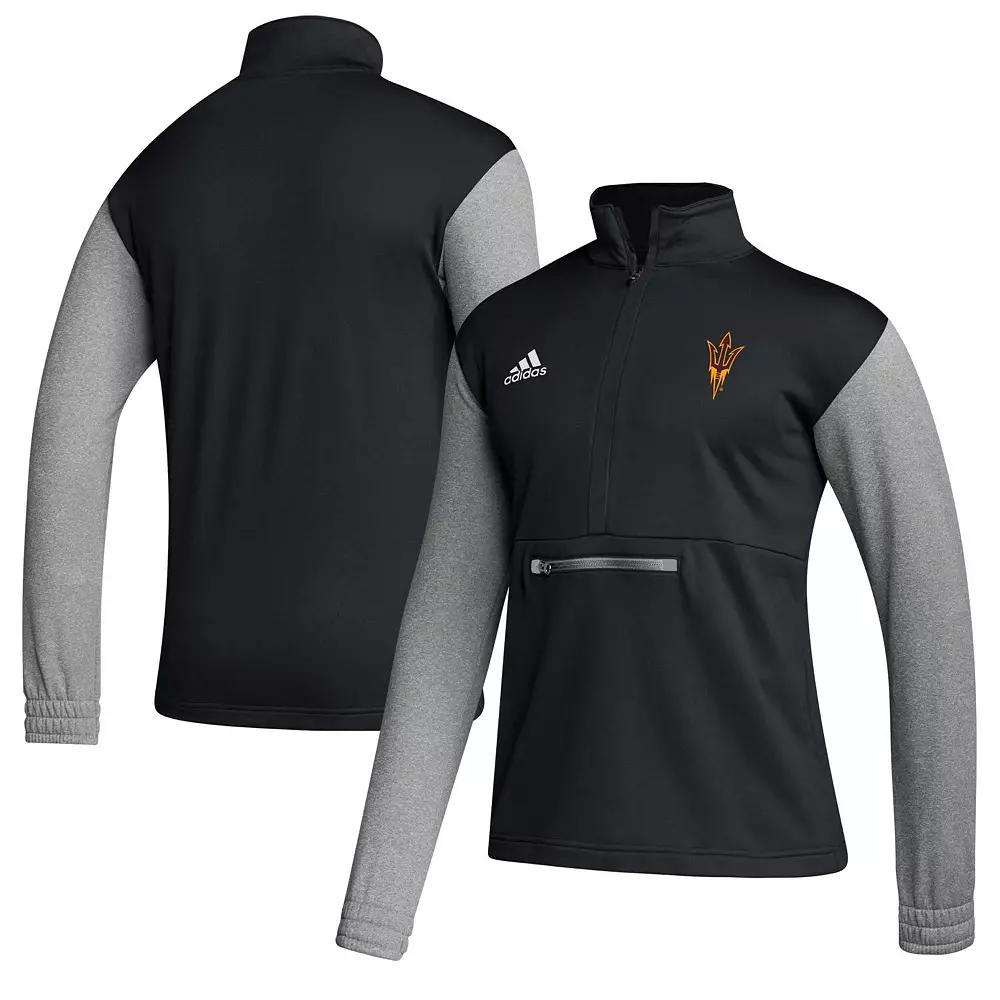 Enhance your ensemble by wearing this Arizona State Sun Devils Team Issue quarter-zip jacket from adidas. This classic pullover features bold Arizona State Sun Devils graphics on the left chest. Its built with AEROREADY technology, which will keep you comfortable by absorbing moisture to make you feel dry.Enhance your ensemble by wearing this Arizona State Sun Devils Team Issue quarter-zip jacket from adidas. This classic pullover features bold Arizona State Sun Devils graphics on the left chest. Its built with AEROREADY technology, which will keep you comfortable by absorbing moisture to make you feel dry.Stand up collarContrast sleevesBrand: adidas1/4-ZipMaterial: 100% Recycled PolyesterAEROREADY technology absorbs moisture and makes you feel dryLong sleeveOfficially licensedScreen print graphicsLightweight top suitable for mild temperaturesMachine wash, tumble dry lowImportedElastic cuffsZippered front pocketFleece lining Color: Black. Gender: male. Age Group: adult.