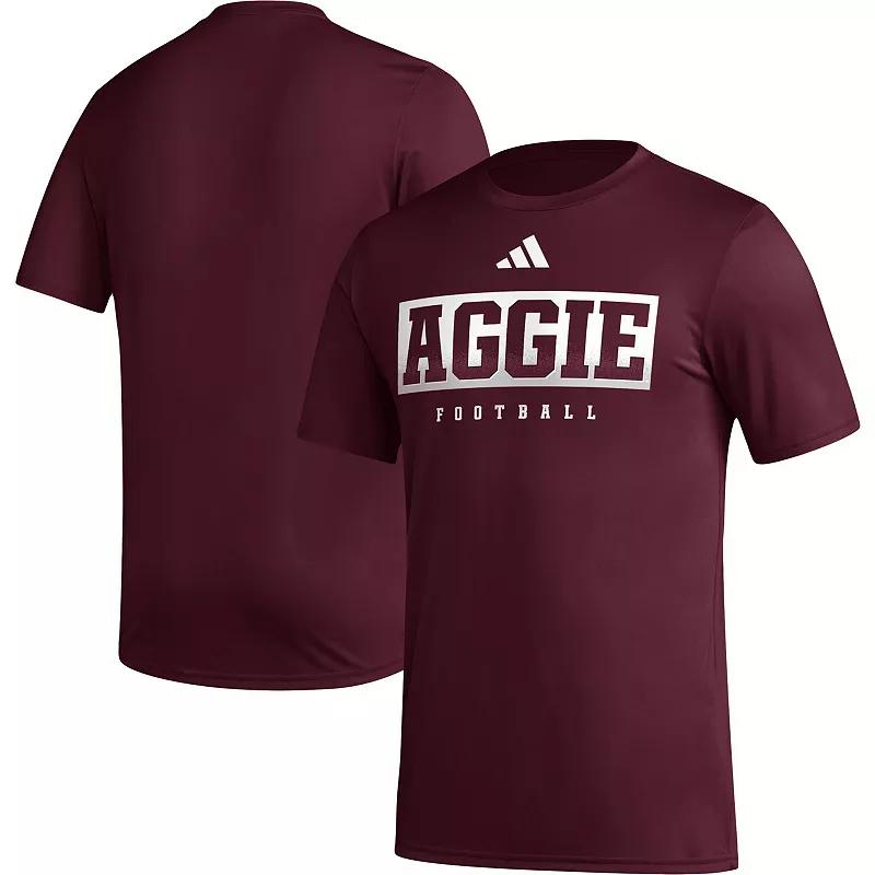 This Football Practice Pregame T-shirt by adidas is ideal for training or an intense workout. Bold Texas A&M Aggies graphics across the chest help you channel the same grit as your favorite player. Integrated AEROREADY technology evaporates moisture while supplying a lightweight, breathable feel.