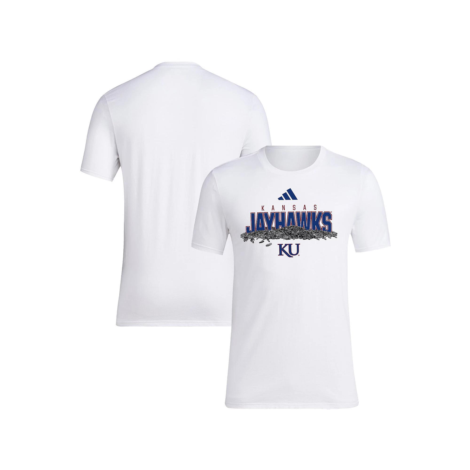 Hey, batter, batter! Its time to step up to the plate and crush the apparel game with this Kansas Jayhawks Baseball Sunflower Seeds T-Shirt. adidas brings the heat with versatile Kansas Jayhawks fan gear, engineered for everyday wear, that features a creative design celebrating the game you love.Hey, batter, batter! Its time to step up to the plate and crush the apparel game with this Kansas Jayhawks Baseball Sunflower Seeds T-Shirt. adidas brings the heat with versatile Kansas Jayhawks fan gear, engineered for everyday wear, that features a creative design celebrating the game you love.PRODUCT FEATURESShort sleeveOfficially licensedCrew neckMaterial: 100% CottonMachine wash, tumble dry lowScreen print graphicsBrand: adidasImported Size: 2XL. Color: White. Gender: male. Age Group: adult.
