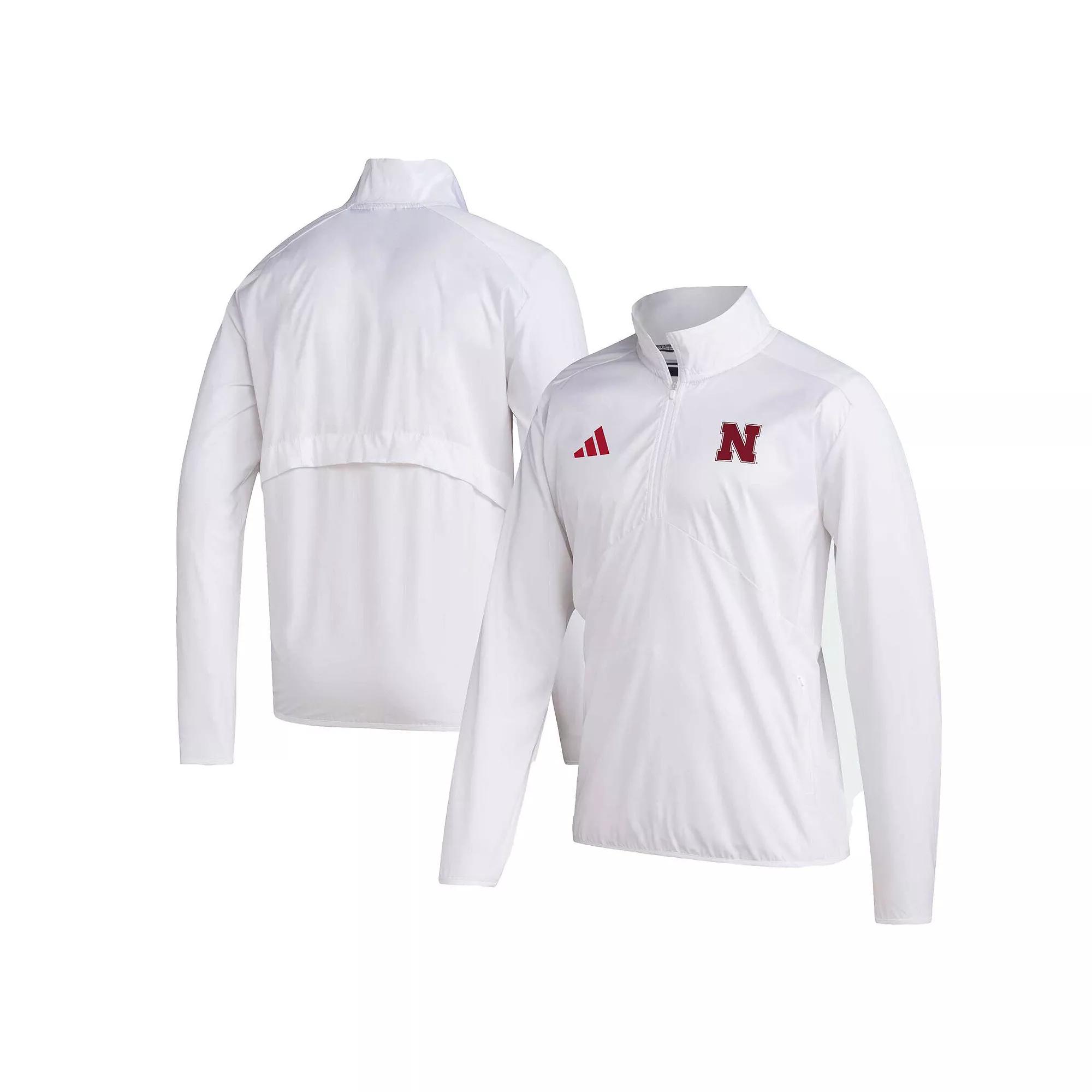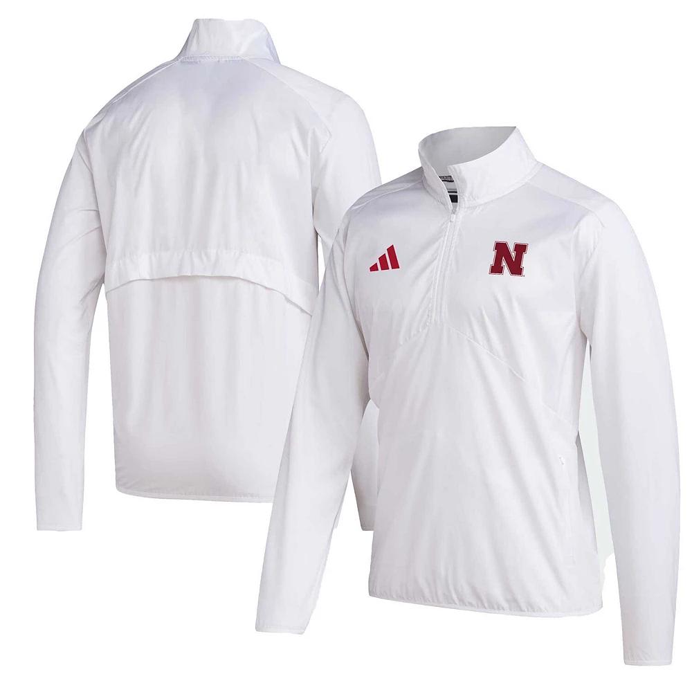 Men's adidas White Nebraska Huskers Sideline AEROREADY Raglan Sleeve Quarter-Zip Jacket, Size: Small Product Image