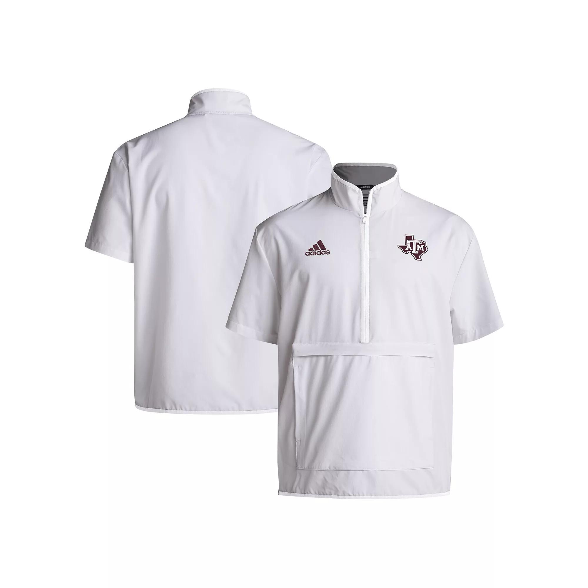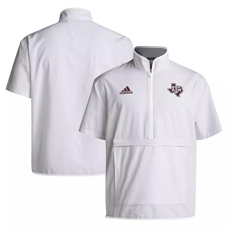 Men's adidas White Texas A&M Aggies 2024 Coaches Sideline Half-Zip Short Sleeve Jacket,