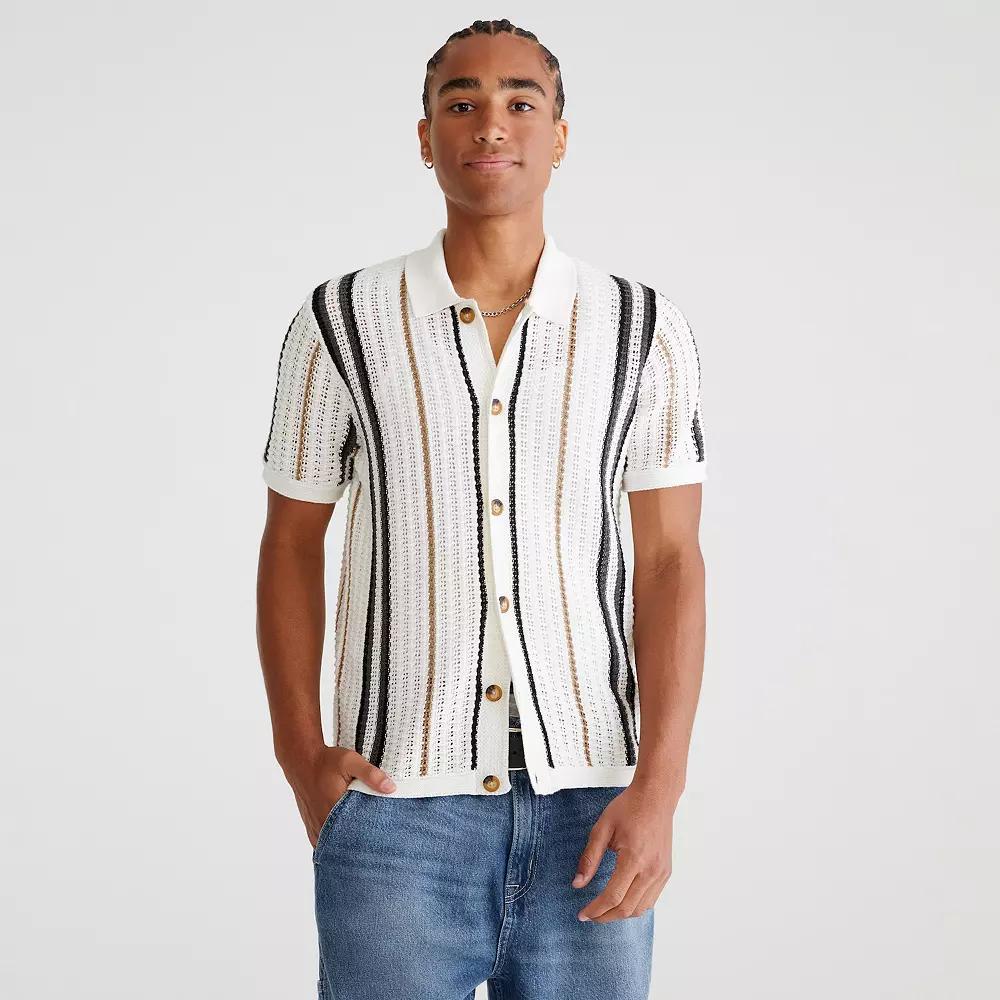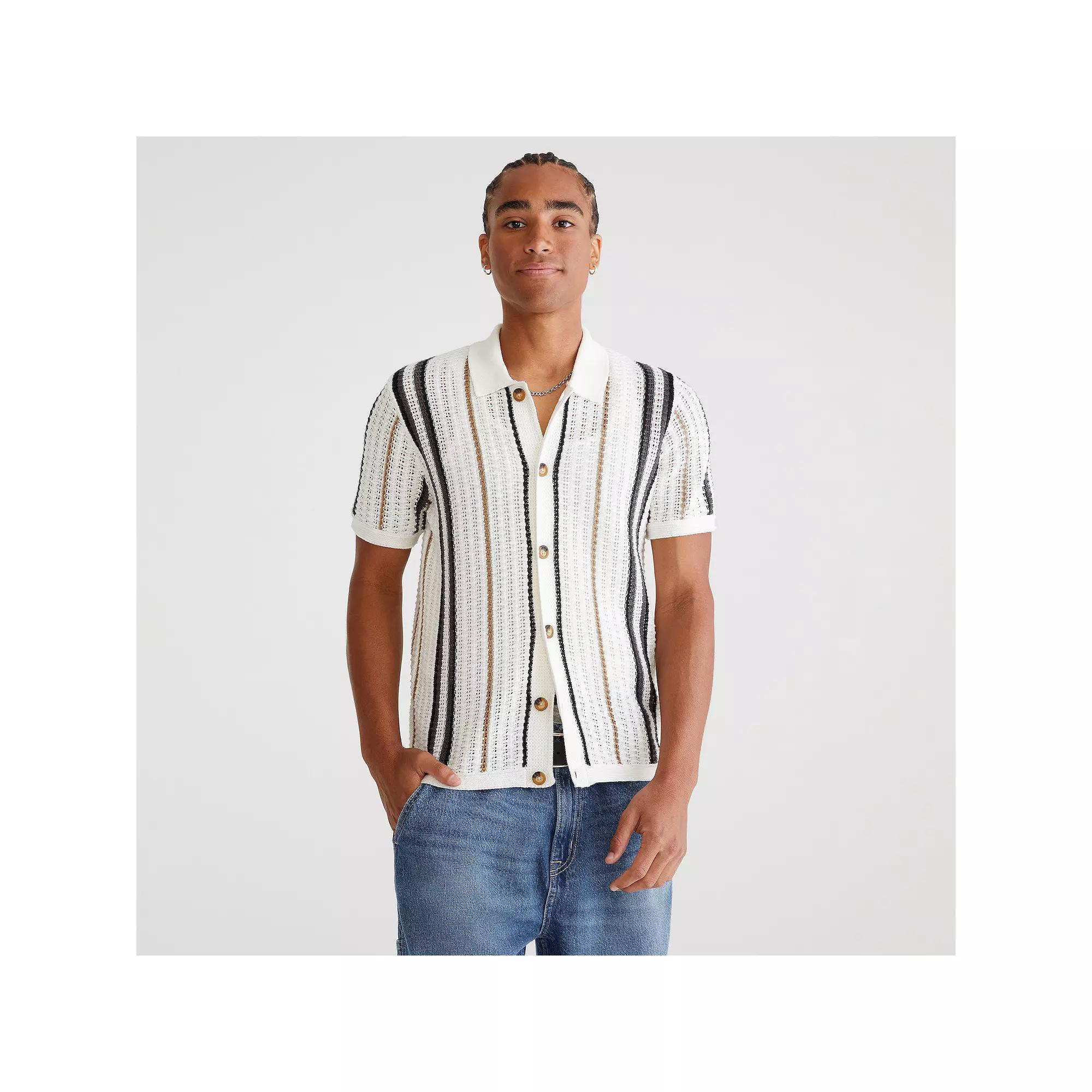 Update your wardrobe with this Men's Aeropostale Short-Sleeve Stripe Sweater. Click on this MEN'S GUIDE to find the perfect fit and more!Update your wardrobe with this Men's Aeropostale Short-Sleeve Stripe Sweater. Click on this MEN'S GUIDE to find the perfect fit and more!" target="_blank">FEATURES Button-front Short sleeveFIT & SIZING Relaxed fitFABRIC & CARE Cotton Polyester Machine wash Imported Size: XL. Color: Tofu. Gender: male. Age Group: adult.