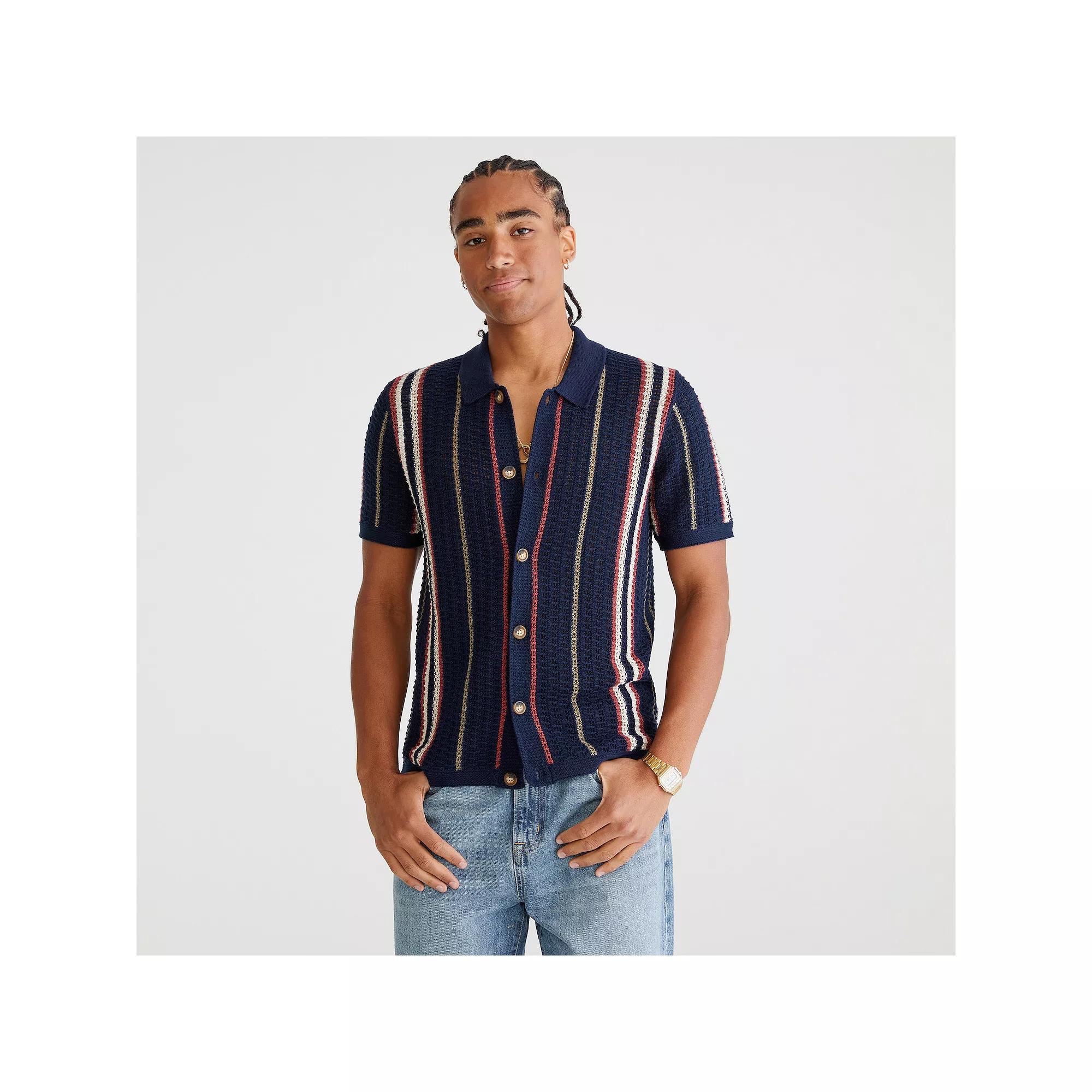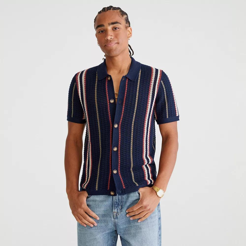 Update your wardrobe with this Men's Aeropostale Short-Sleeve Stripe Sweater. Click on this MEN'S GUIDE to find the perfect fit and more!Update your wardrobe with this Men's Aeropostale Short-Sleeve Stripe Sweater. Click on this MEN'S GUIDE to find the perfect fit and more!" target="_blank">FEATURES Button-front Short sleeveFIT & SIZING Relaxed fitFABRIC & CARE Cotton Polyester Machine wash Imported Color: Ocean Deep. Gender: male. Age Group: adult.