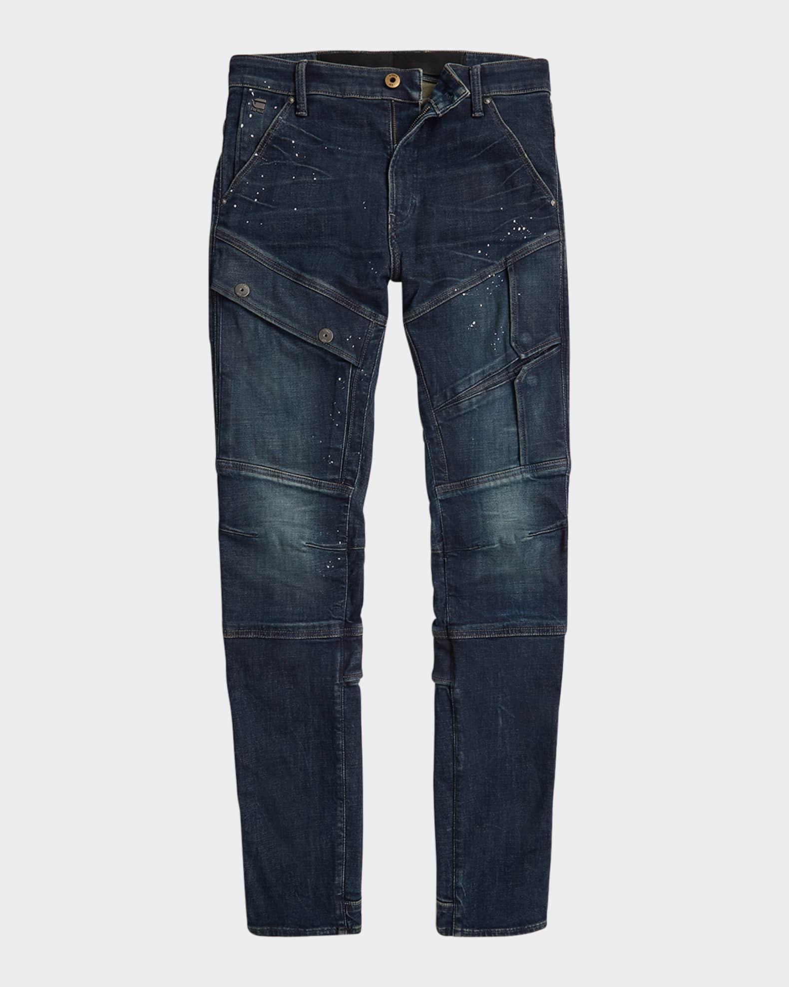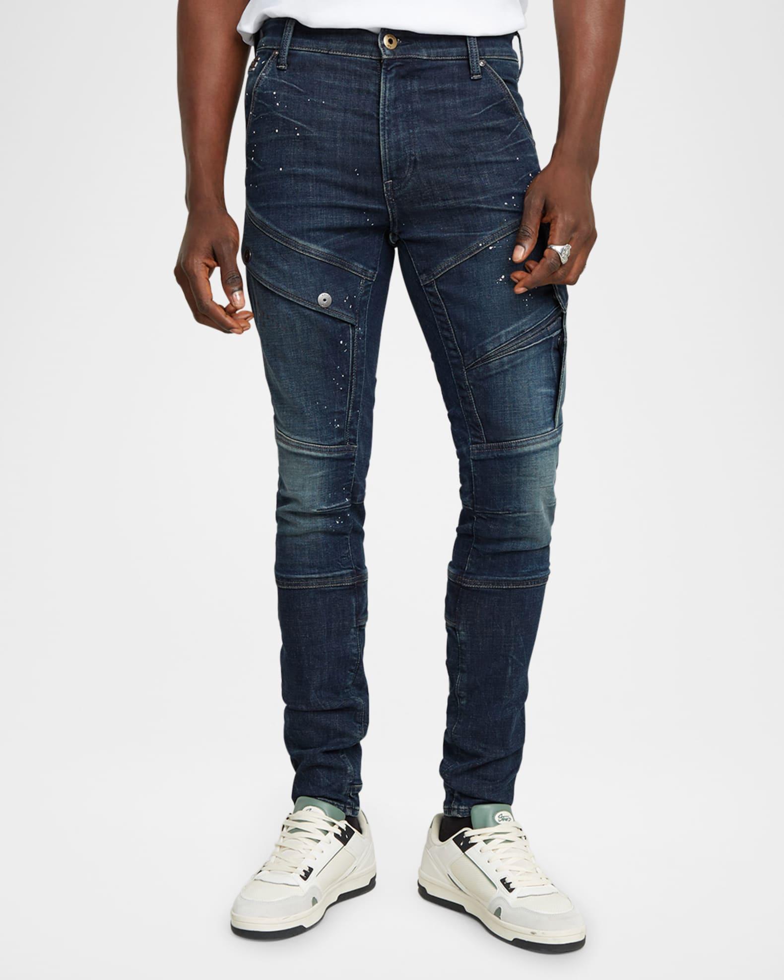 G-STAR RAW jeans in lightly whiskered denim with paint splatter detail Regular rise Front slant pockets Snap thigh pockets with double flap pockets Concealed pockets on back leg Fitted through skinny legs Button/zip closure; belt loops Cotton/elasterell-p/elastane Machine wash cold, line dry Imported