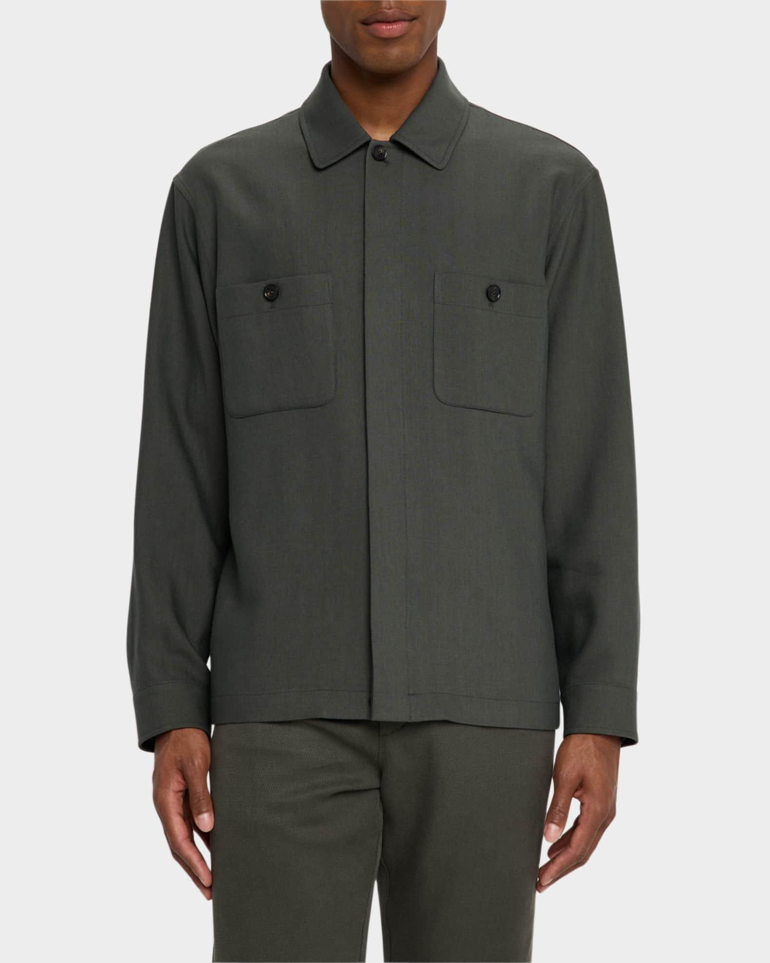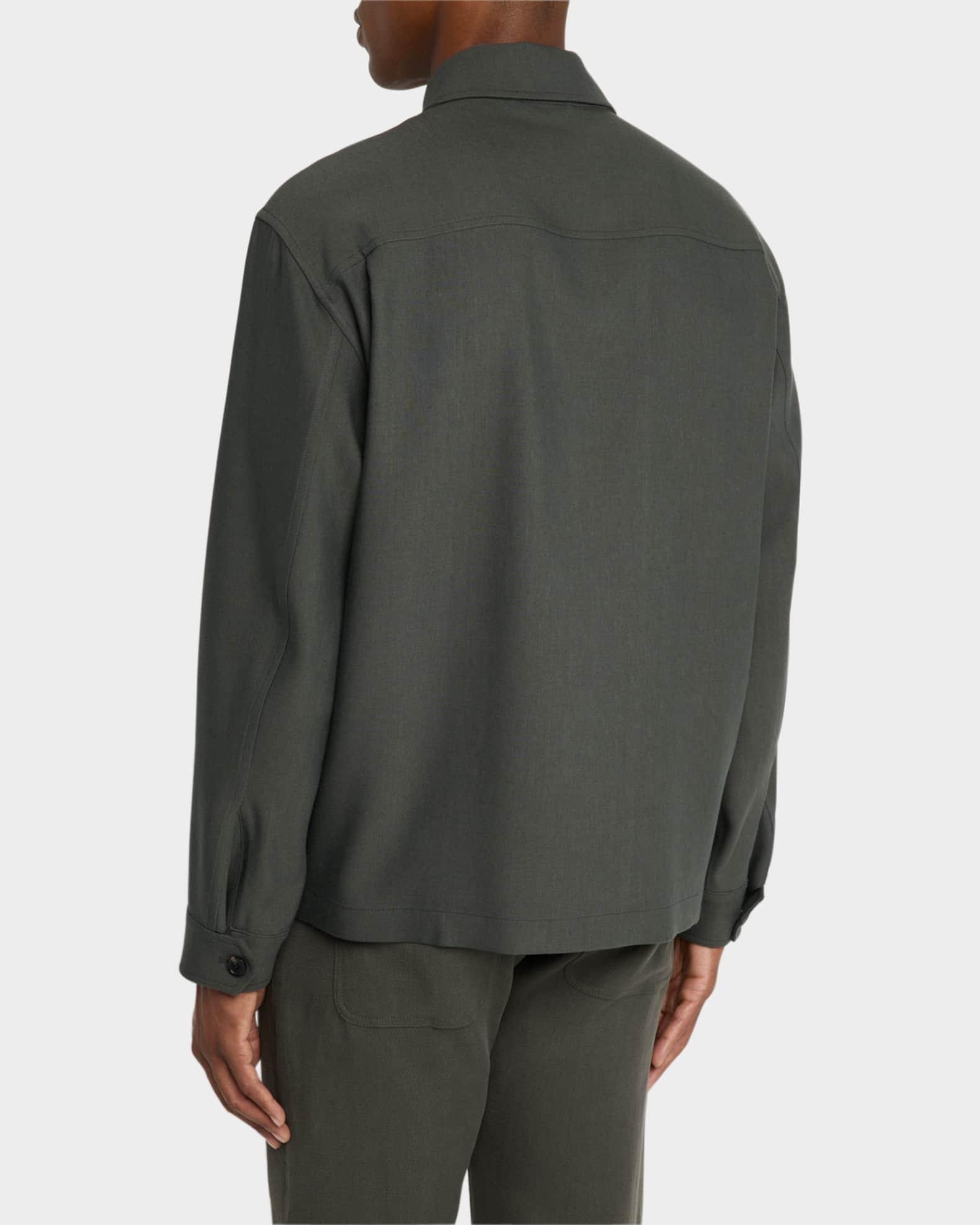 Loro Piana "Alfred" overshirt in Linen Mohair Rain® for a lightweight, transitional style with a contemporary touch Linen Mohair Rain combines crisp linen crepe with the subtle sheen of twisted mohair yarn, resulting in a compact yet fluid fabric Rain System® treatment for water resistance without compromising the soft hand and elegant drape Shirt collar Concealed button front Two buttoned chest patch pockets Long sleeves Adjustable button cuffs Straight hem Unlined Slightly oversized fit Flax/mohair Unlined Dry clean Made in Italy