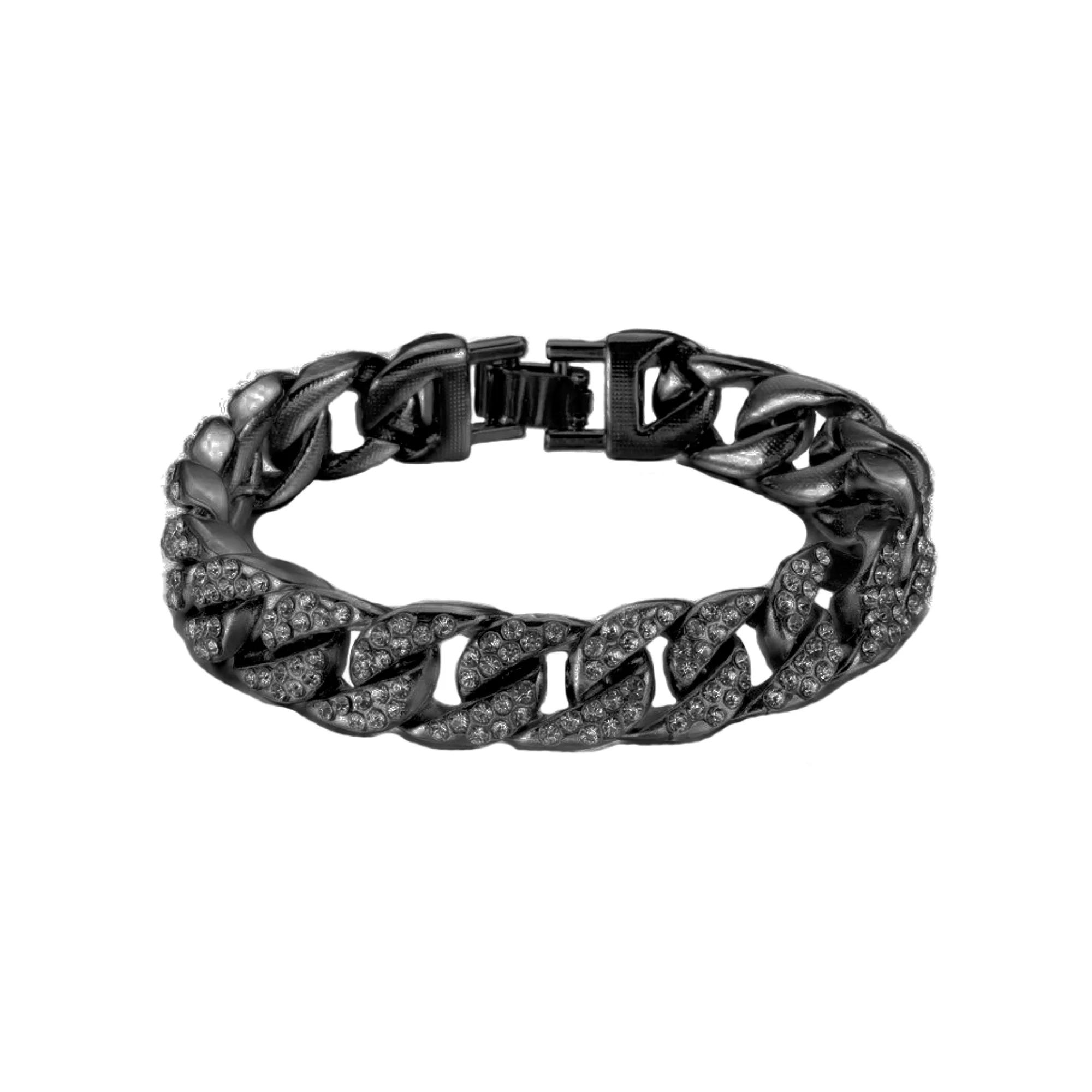Men's American Exchange Gunmetal Tone Bling Cuban Chain Bracelet,  Product Image