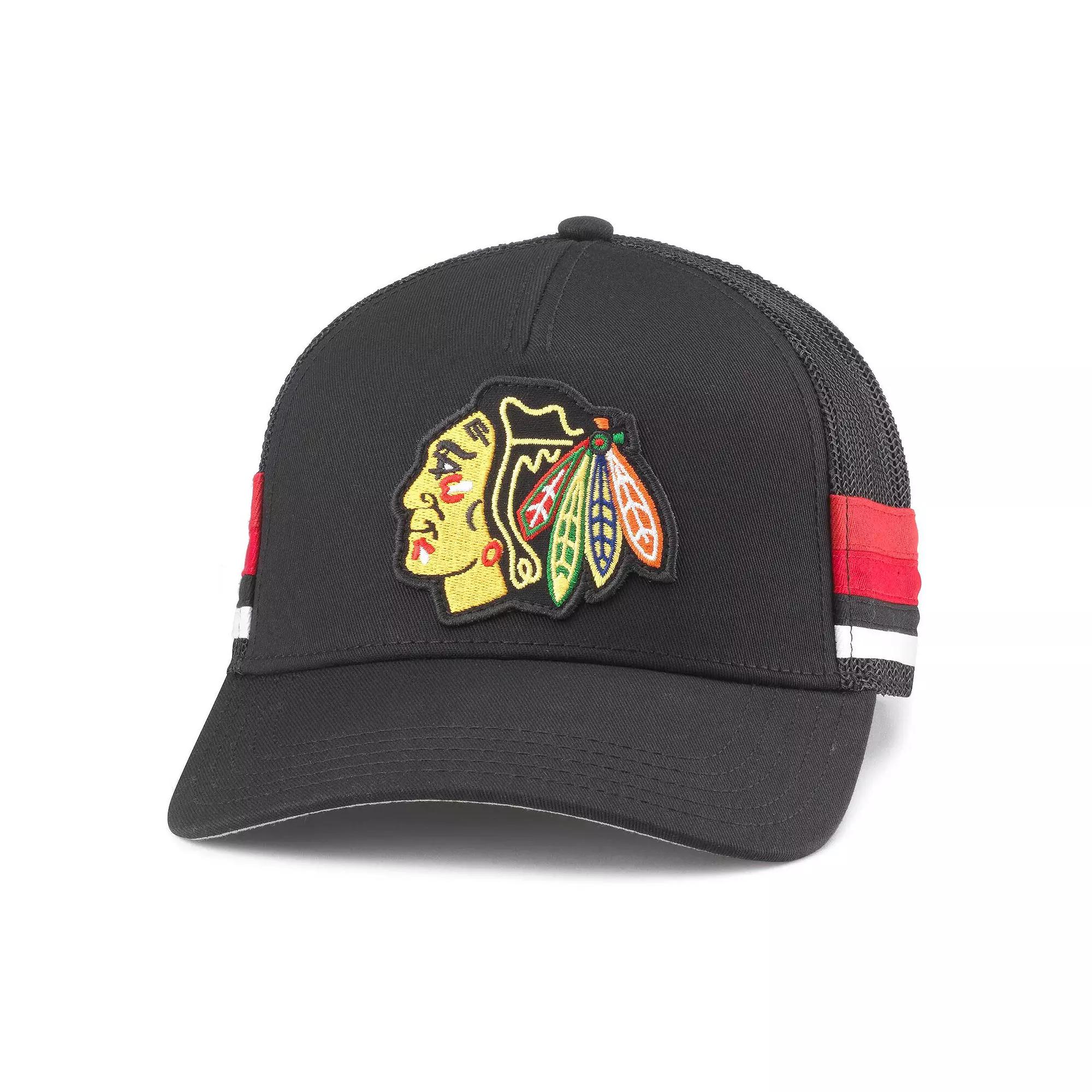Quickly add some Chicago Blackhawks flair to outfits with this HotFoot Trucker hat. Designed by American Needle, it features an embroidered Chicago Blackhawks patch on washed twill fabric and sewn-on stripes in colors matching the team. Mesh panels provide a breathable feel, and a snap closure makes adjusting the fit fast and easy.Quickly add some Chicago Blackhawks flair to outfits with this HotFoot Trucker hat. Designed by American Needle, it features an embroidered Chicago Blackhawks patch on washed twill fabric and sewn-on stripes in colors matching the team. Mesh panels provide a breathable feel, and a snap closure makes adjusting the fit fast and easy.PRODUCT FEATURESMaterial: 100% Cotton - Material I; 100% Polyester - Material IIStructured fitOfficially licensedCurved billSnap ClosureWipe clean with a damp clothFour mesh mid and rear panelsMid CrownOne solid front panelOne size fits mostBrand: American NeedleSewn-on stripesImportedContrast-color undervisorEmbroidered fabric applique Size: One Size. Color: HWK BLACK. Gender: male. Age Group: adult.
