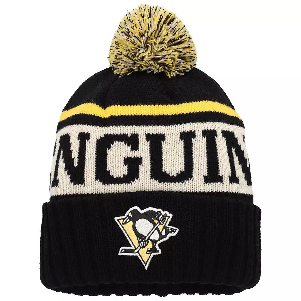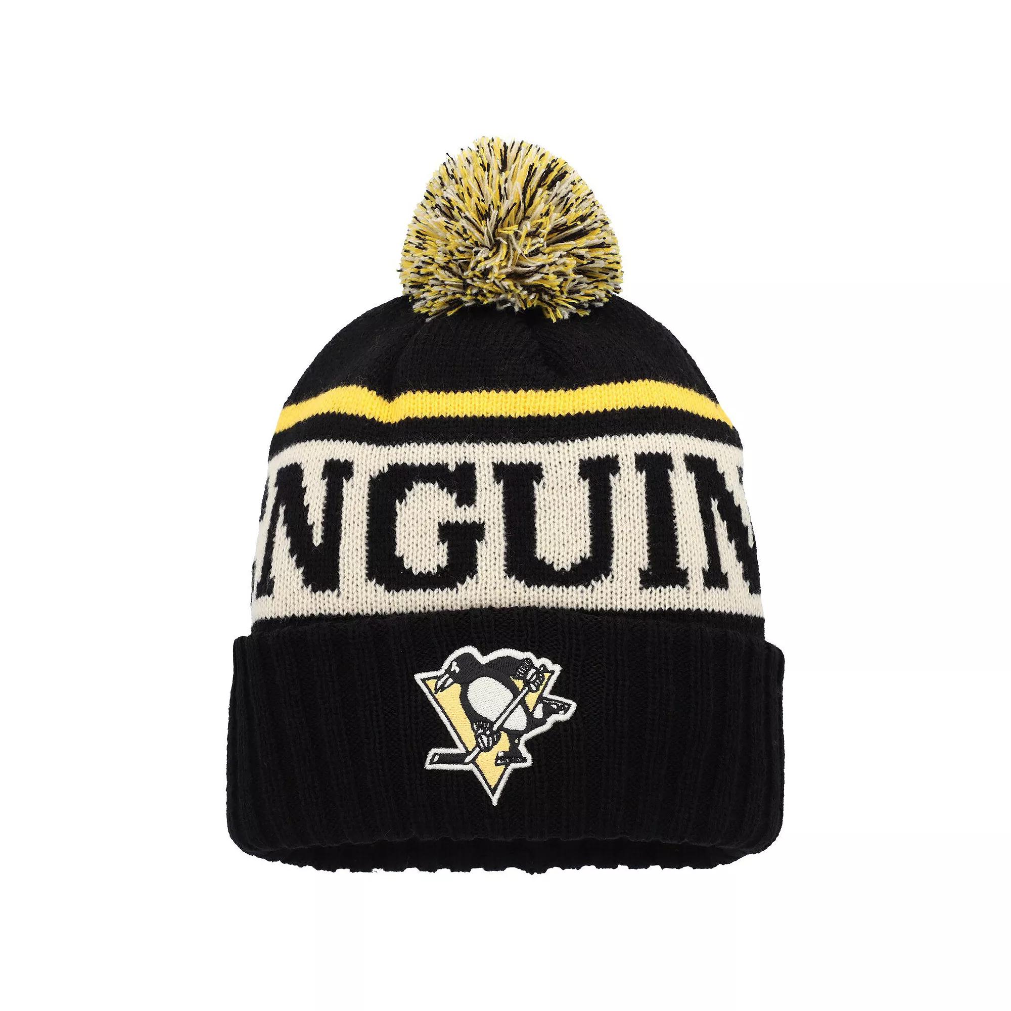 Retain heat in a comfy way with this Pittsburgh Penguins Pillow Line cuffed knit hat. Made by American Needle, its super-soft fabric features an embroidered Pittsburgh Penguins logo, the team name in big text highlighted by a striped pattern and a tri-color pom. The stretch fit provides a snug feel and cozy warmth.