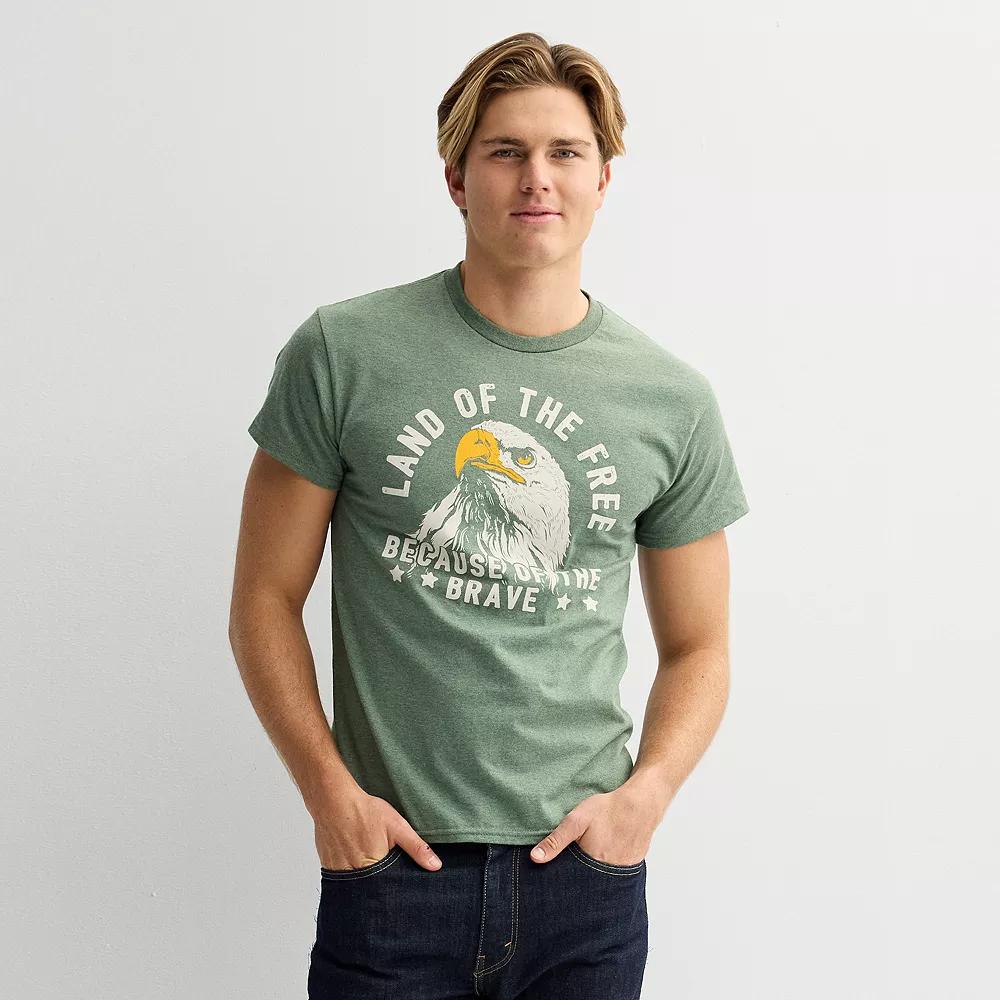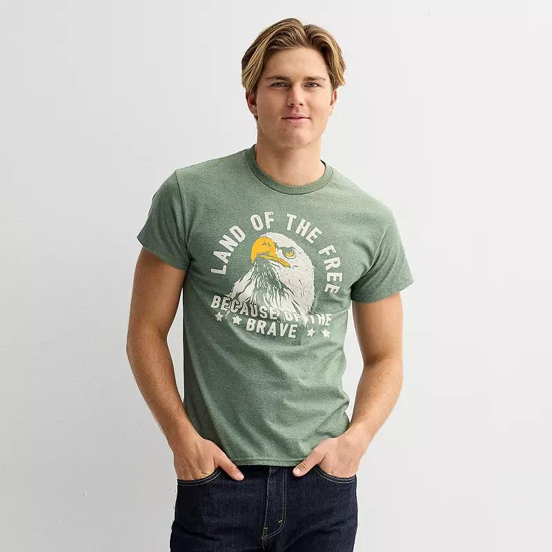 Hell love the look and feel of this Mens Americana Free Eagle Short Sleeve Graphic Tee. Hell love the look and feel of this Mens Americana Free Eagle Short Sleeve Graphic Tee. FEATURES Crewneck Short sleevesFABRIC & CARE Cotton, polyester Machine wash Imported Color: Med Green. Gender: male. Age Group: adult.