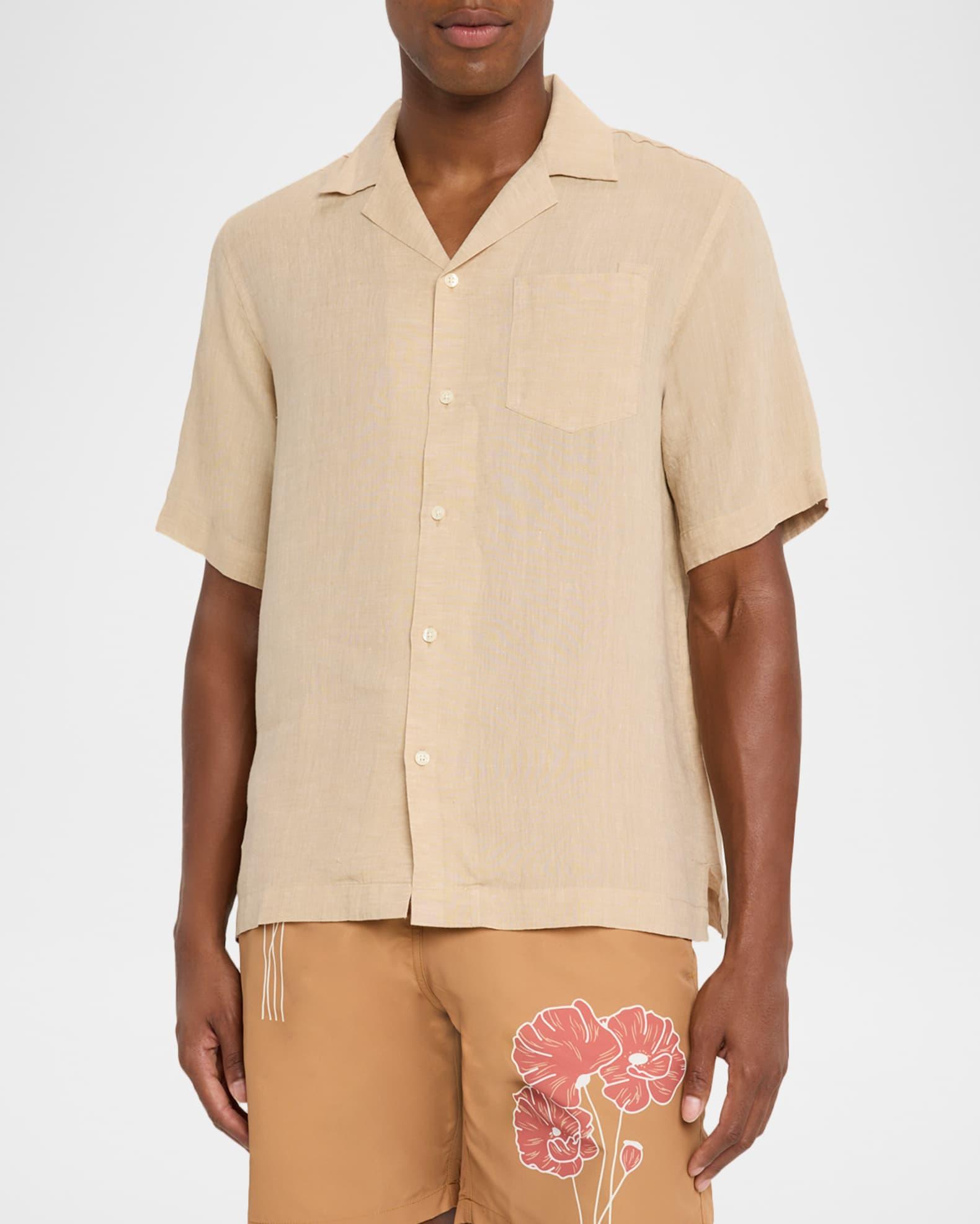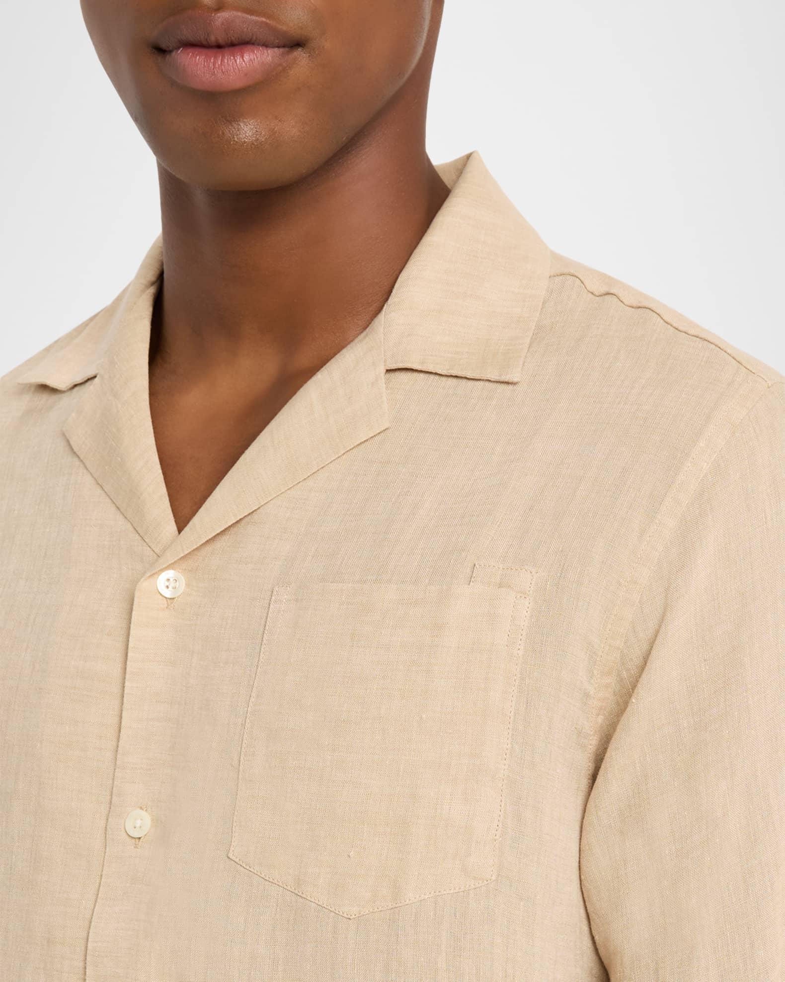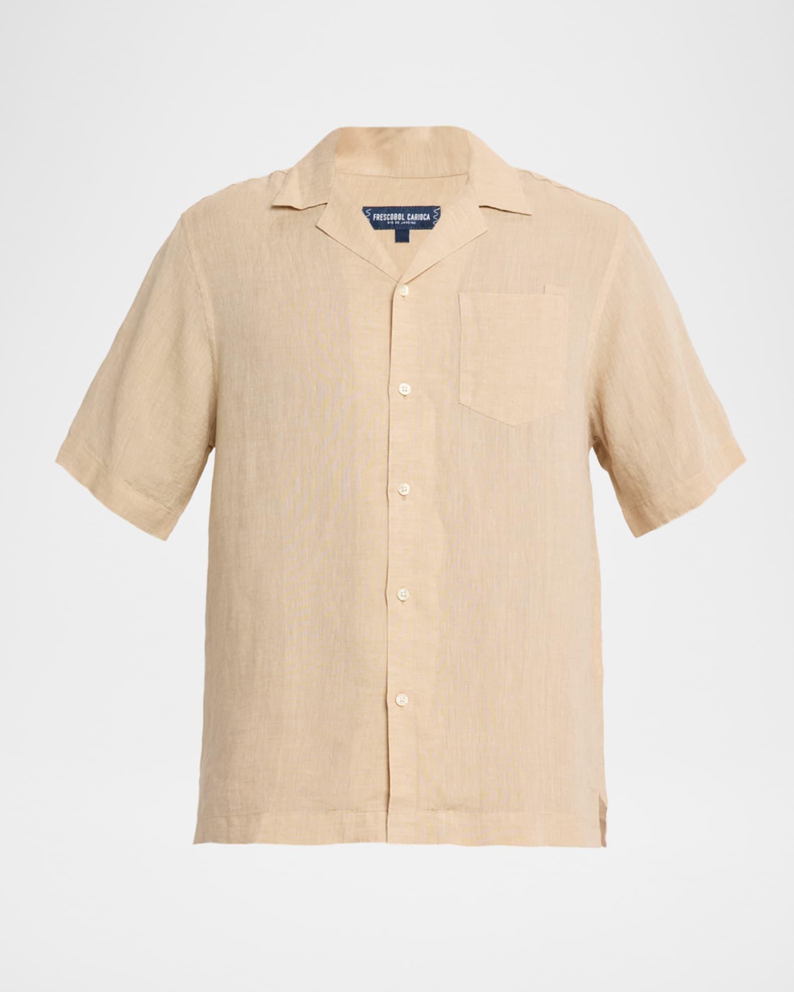 Frescobol Carioca shirt crafted from the finest linen and complete with a single patch pocket on the chest for a touch of casual flair Approx. 17.1"L from shoulder to hem Camp collar Button placket Short sleeves; approx. 9.8"L Back yoke Vented sides Relaxed fit Linen Unlined Machine wash cold Made in Portugal