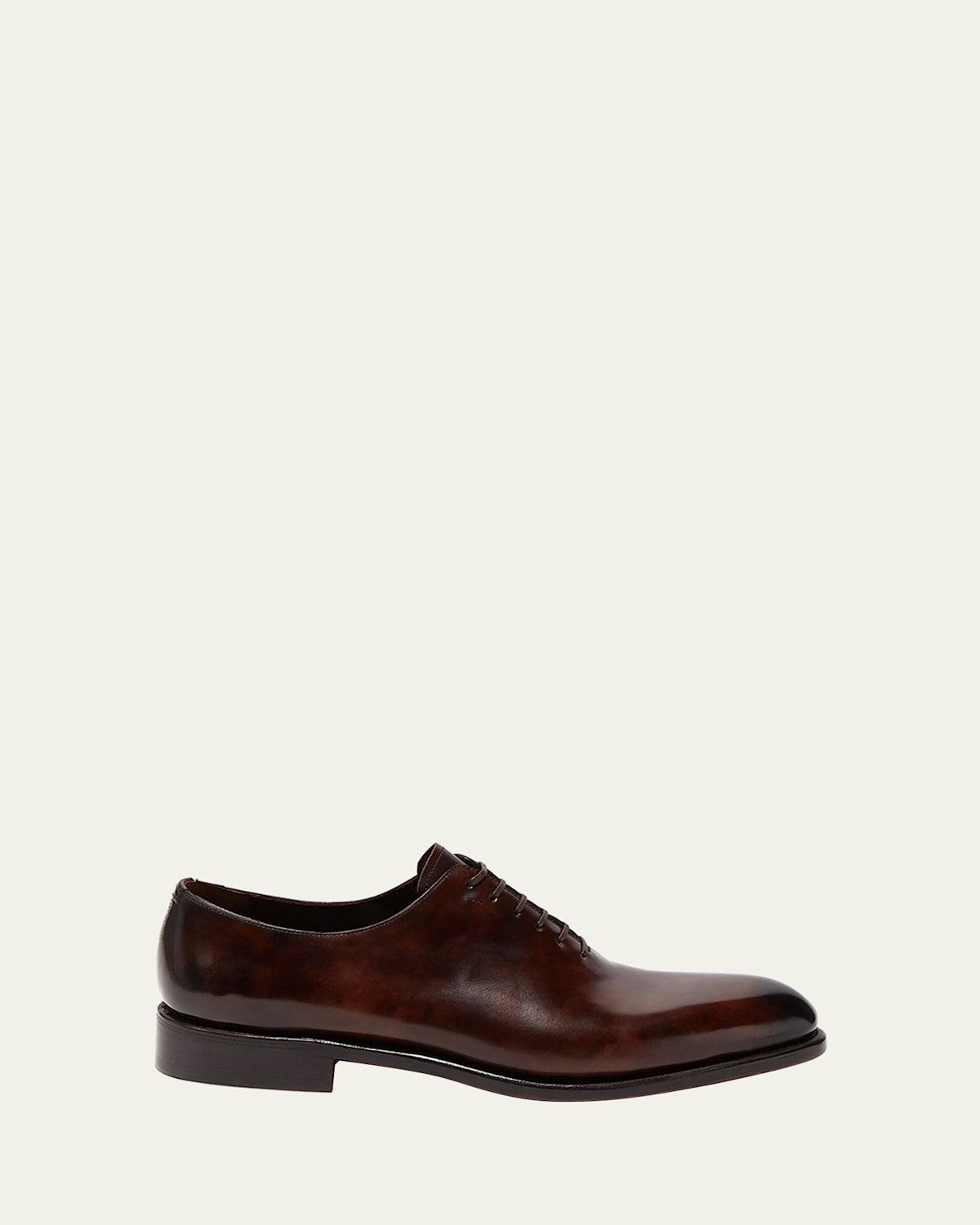 Men's Angiolo Tramezza Whole-Cut Leather Lace-Up Shoes