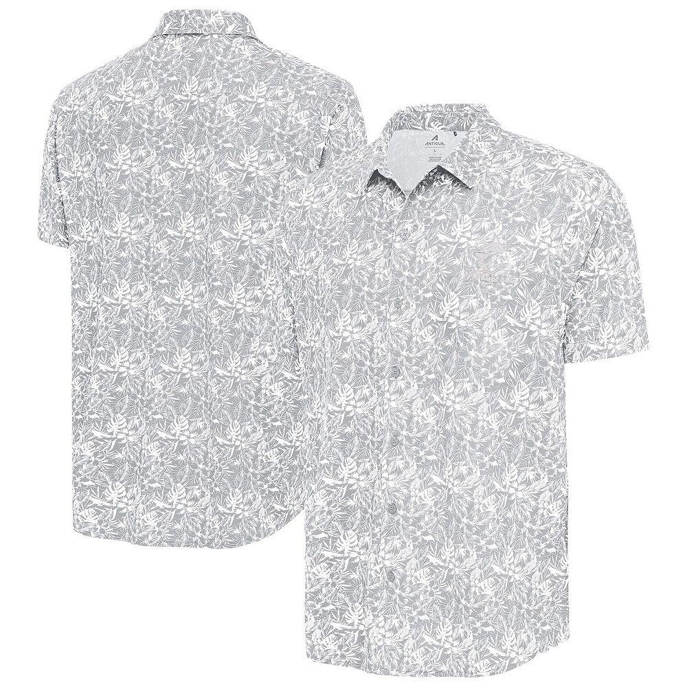 Get into vacation mode with your Miami Marlins in this Antigua Resort Button-Up Shirt. Made from a blend of polyester and spandex, this short-sleeve button-up offers both comfort and flexibility while enjoying some fun in the sun. The embroidered Miami Marlins graphics on the left chest make it clear which team youre rooting for.Get into vacation mode with your Miami Marlins in this Antigua Resort Button-Up Shirt. Made from a blend of polyester and spandex, this short-sleeve button-up offers both comfort and flexibility while enjoying some fun in the sun. The embroidered Miami Marlins graphics on the left chest make it clear which team youre rooting for.PRODUCT FEATURESFull-button frontOfficially licensedShort sleeveEmbroidered graphicsBack yoke seamSublimated all-over tropical printImportedMaterial: 88% Polyester/12% SpandexMachine wash, tumble dry lowRounded droptail hemBrand: Antigua Color: Grey. Gender: male. Age Group: adult.