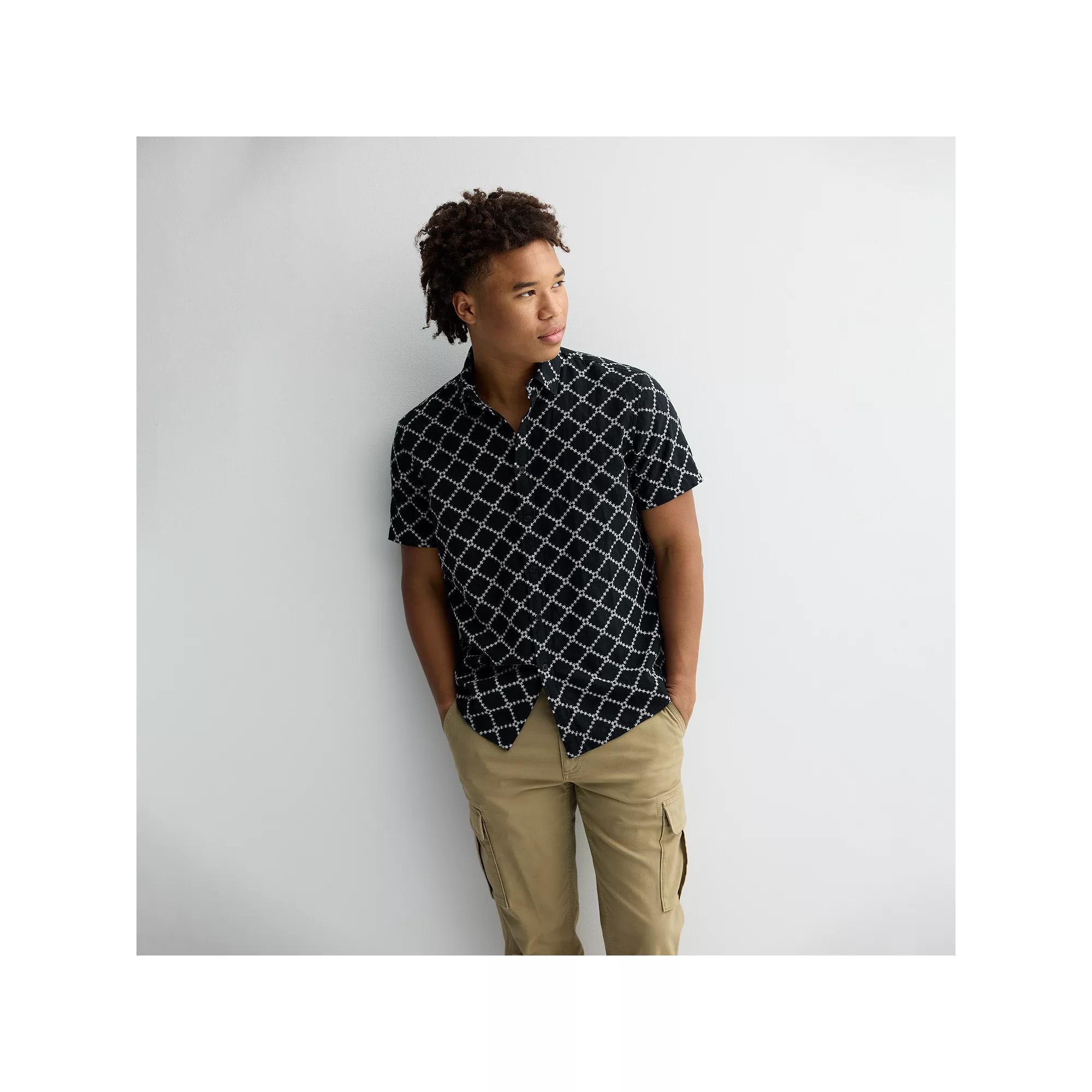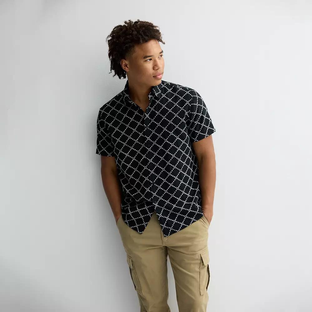 Look your best in this stylish men's Apt. 9 short sleeve embroidered button-down shirt. Click on this MEN'S GUIDE to find the perfect fit and more!Look your best in this stylish men's Apt. 9 short sleeve embroidered button-down shirt. Click on this MEN'S GUIDE to find the perfect fit and more!FEATURES Point collar Button-front closure Short sleeves Shirttail hem Embroidered designFIT & SIZING Regular fitFABRIC & CARE Cotton Machine wash ImportedRESPONSIBLE Supports more sustainable cotton farming Color: Mineral Black. Gender: male. Age Group: adult.