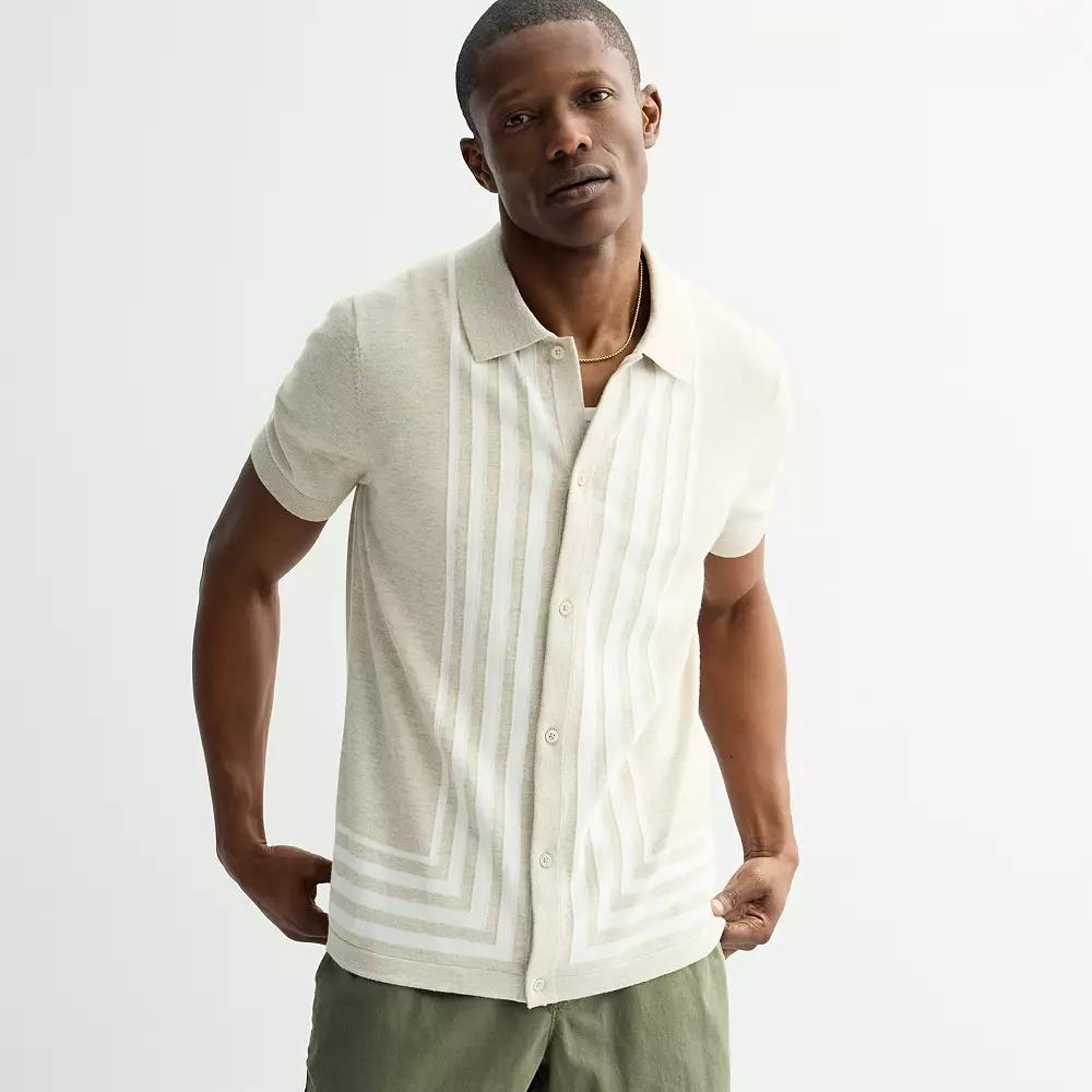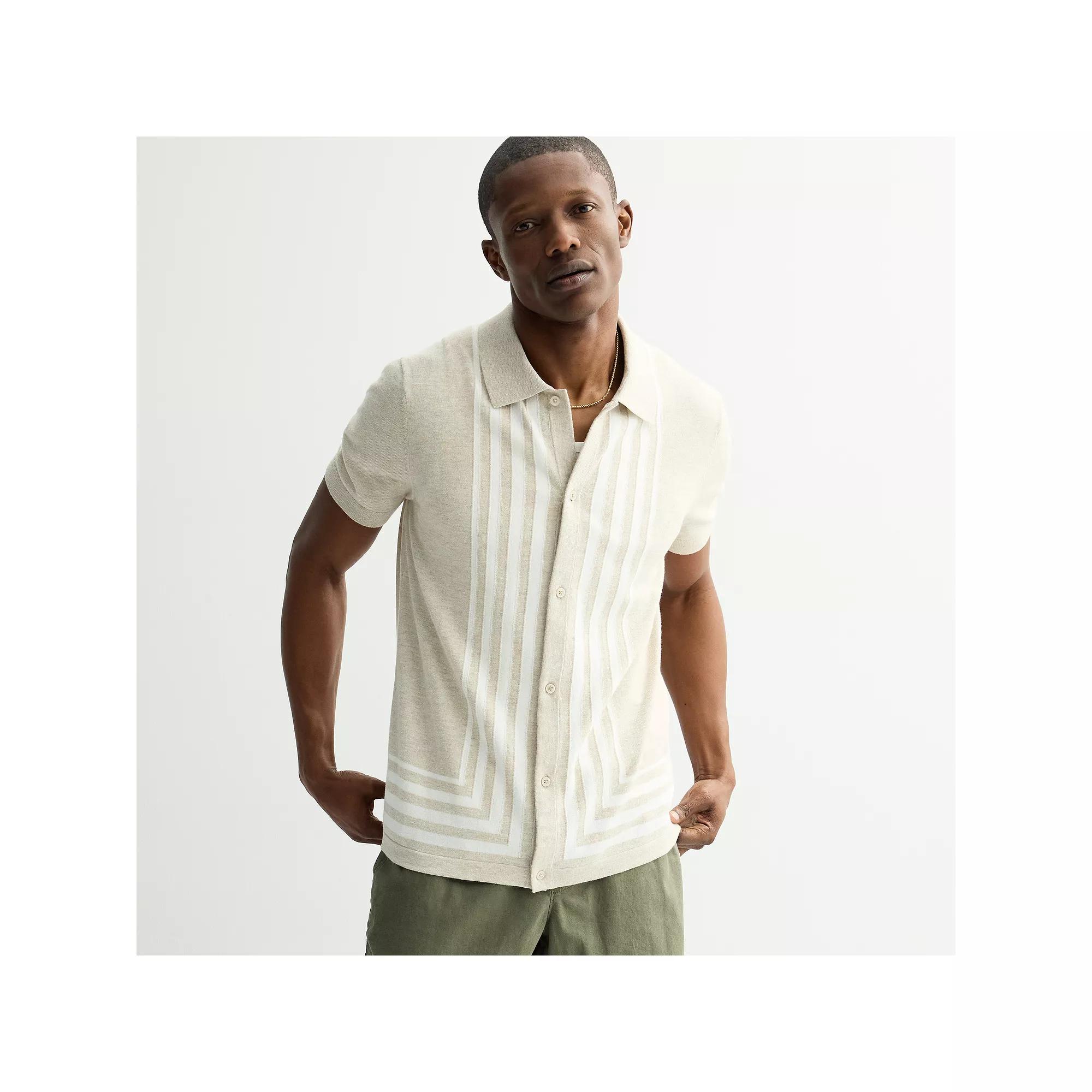 Update his wardrobe with this mens Apt. 9 knit button-up placement stripe shirt. Click on this MENS GUIDE to find the perfect fit and more!Update his wardrobe with this mens Apt. 9 knit button-up placement stripe shirt. Click on this MENS GUIDE to find the perfect fit and more!FEATURES Button-front Cuffed Ribbed hem Short sleeveFIT & SIZING Regular fitFABRIC & CARE Acrylic, merio wool Machine wash - delicate Imported Size: XXL. Color: Cream Stripe. Gender: male. Age Group: adult.