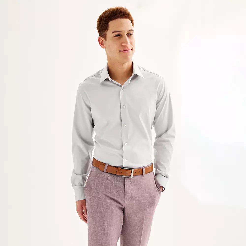 Fashion forward. Make a stylish statement in this mens Apt. 9 button-down shirt featuring a slim-fit design. HEIQ Smart Temp helps maintain core body temperature.Click on this MENS GUIDE to find the perfect fit and more! Fashion forward. Make a stylish statement in this mens Apt. 9 button-down shirt featuring a slim-fit design. HEIQ Smart Temp helps maintain core body temperature.Click on this MENS GUIDE to find the perfect fit and more! HEIQ Smart Temp helps maintain core body temperature Stretch fabric Wrinkle-resistant fabric Spread collar Long sleevesFIT & SIZING Slim fitFABRIC & CARE Polyester, spandex Machine wash ImportedSUSTAINABILITY FEATURES www.oeko-tex.com/standard100 Tested for harmful substances STANDARD 100 by OEKO-TEX CERTIFIED Testing Institute: Shirley Technologies Limited Certification No. 11-51885 Size: M-34/35. Color: Light Grey. Gender: male. Age Group: adult.