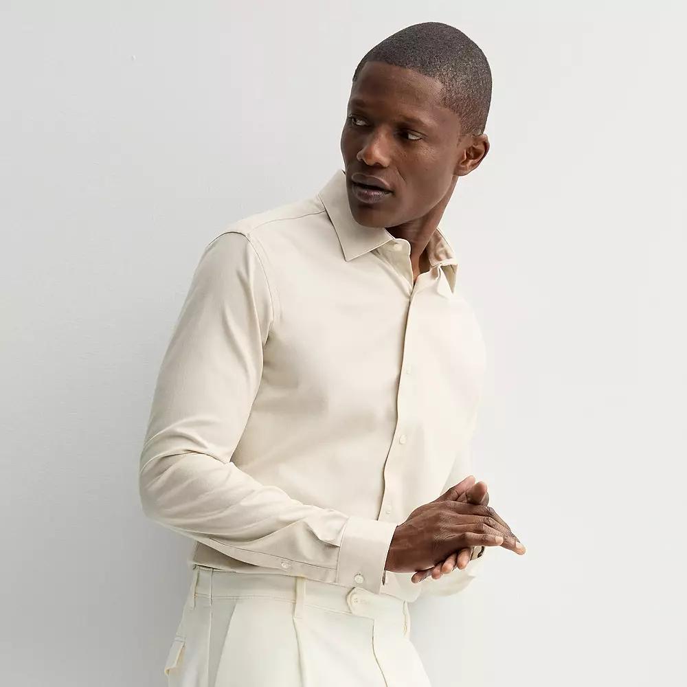 Look great and feel even better in this stretch-fabric button-down from Apt. 9. FEATURES Wrinkle resistant: constructed from breathable fabric enhanced with innovative anti-wrinkle technology designed to resist wrinkles throughout the day Stretch fabric blend for comfortable movement Spread collar flares to accommodate wider tie knots Long sleeves Button frontFIT & SIZING Slim fit features high arm holes, slightly narrow straight body and tapered sleeve openingFABRIC & CARE Cotton, spandex Machine wash ImportedSUSTAINABILITY FEATURES Tested for harmful substances STANDARD 100 by OEKO-TEX® CERTIFIED Certification No. SHWO 0488838 & SHWO 067056, 11-51885, SHWO 067056, 22.HBD.00123 Testing Institute: Testex AG, Shirley® Technologies Limited, Hohenstein Textile Testing Institute, Swiss Textile Testing Institute www.oeko-tex.com/standard100 Size: XL-36/37. Color: Light Beige Dobby. Gender: male. Age Group: adult.