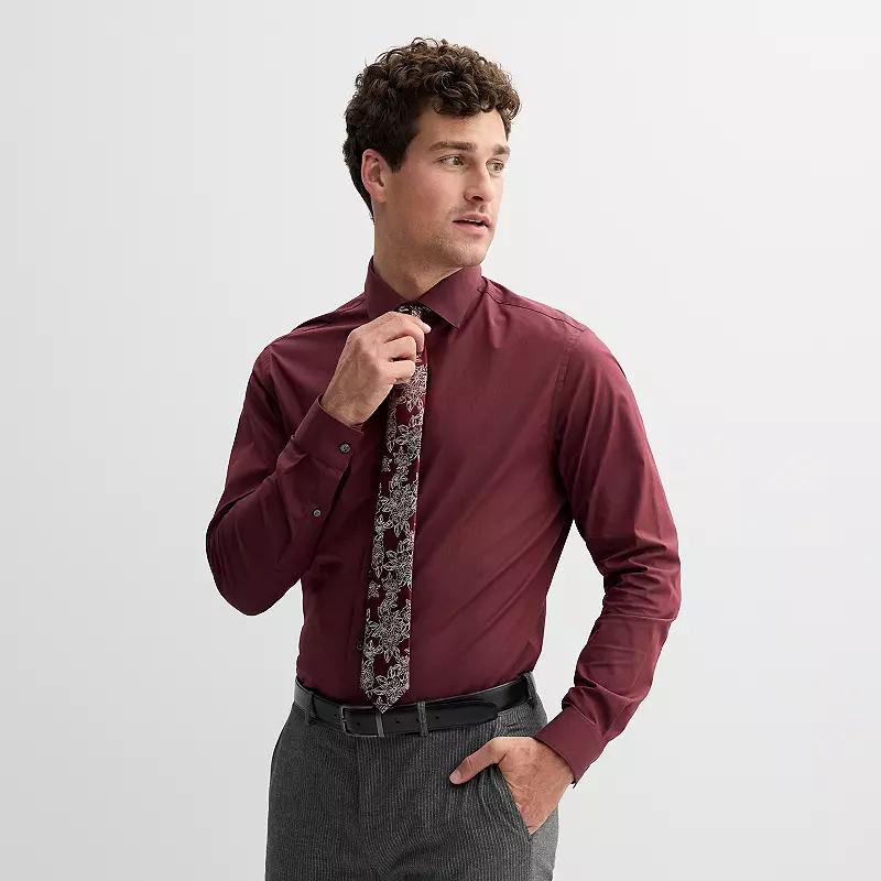 For a sophisticated look that wont soon be forgotten, this mens dress shirt from Apt. 9 features a polished look and fit. For a sophisticated look that wont soon be forgotten, this mens dress shirt from Apt. 9 features a polished look and fit. FEATURES Wrinkle resistant: constructed from breathable fabric enhanced with innovative anti-wrinkle technology designed to resist wrinkles throughout the day Stretch fabric blend for comfortable movement Spread collar flares to accommodate wider tie knots Long sleeves Button frontFIT & SIZING Regular fitFABRIC & CARE Cotton, spandex Machine wash ImportedSUSTAINABILITY FEATURES Tested for harmful substances Supports more sustainable cotton farming STANDARD 100 by OEKO-TEX CERTIFIED Certification No. 11-51885 Testing Institute: Shirley Technologies Limited www.oeko-tex.com/standard100 Size: L-36/37. Color: Dark Red. Gender: male. Age Group: adult. Pattern: Solid. Material: Cotton Blend.