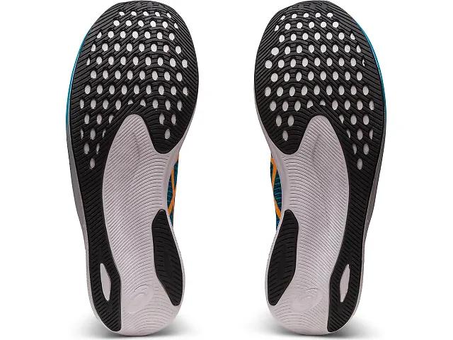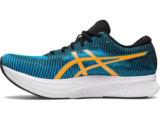 Get ready to run fast in the ASICS Magic Speed 2. ASICS updated the Magic Speed to make it more versatile for both tempo runs and races. A full-length carbon and TPU plate gives you plenty of pop to propel your feet forward, crafting a smoother and more propulsive rebound during the toe-off phase of your stride. The top layer has FF Blast Plus cushioning to give you a more responsive rebound while keeping the shoe lightweight. A new double jacquard upper provides a better fit while you run. The upper is durable enough for everyday training, but light and breathable enough for racing. Designers also retooled the shoe to make it fit and feel more comfortable on your foot. The ASICS Magic Speed 2 is light enough for racing, responsive enough for speedwork and durable enough for daily training.