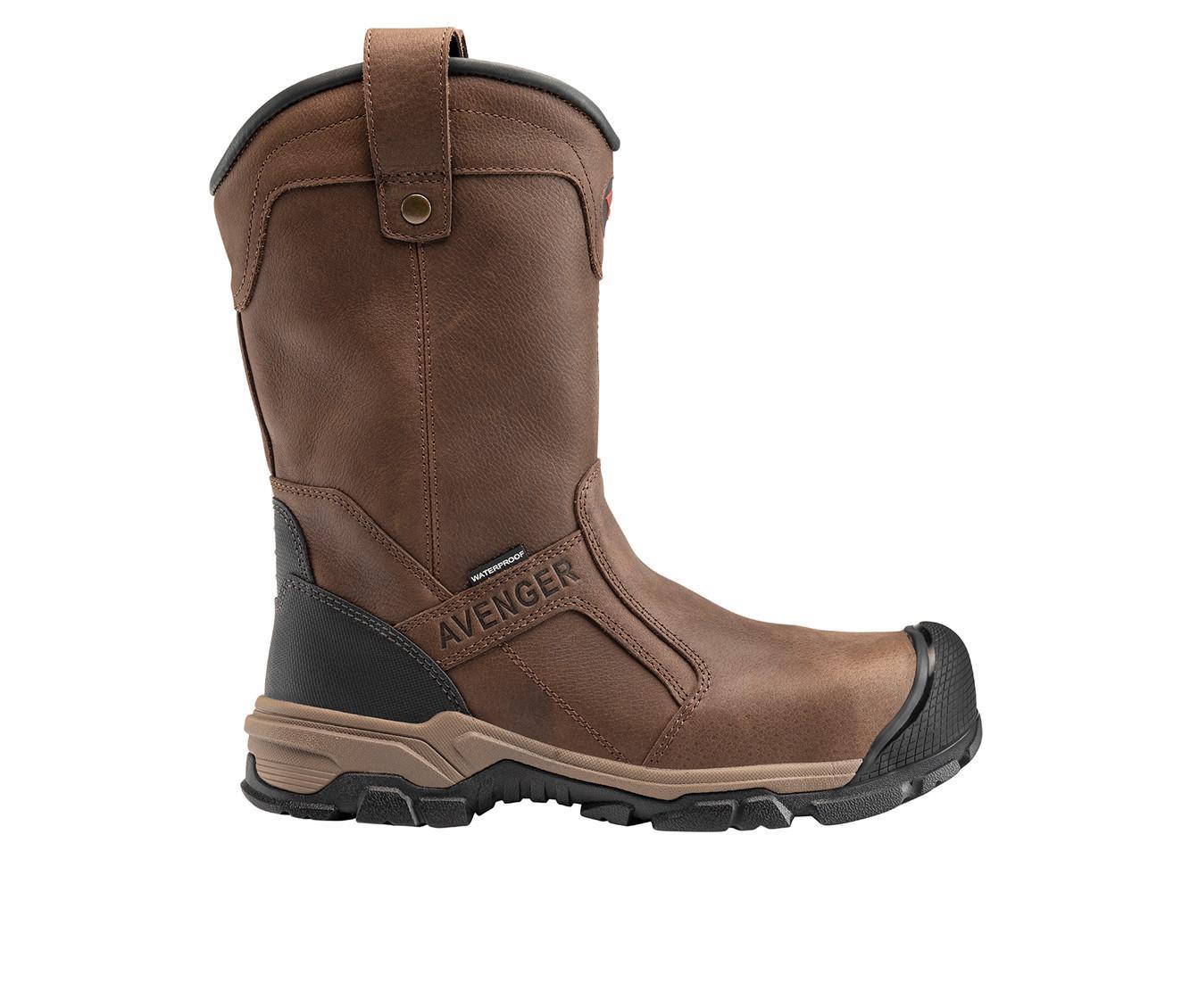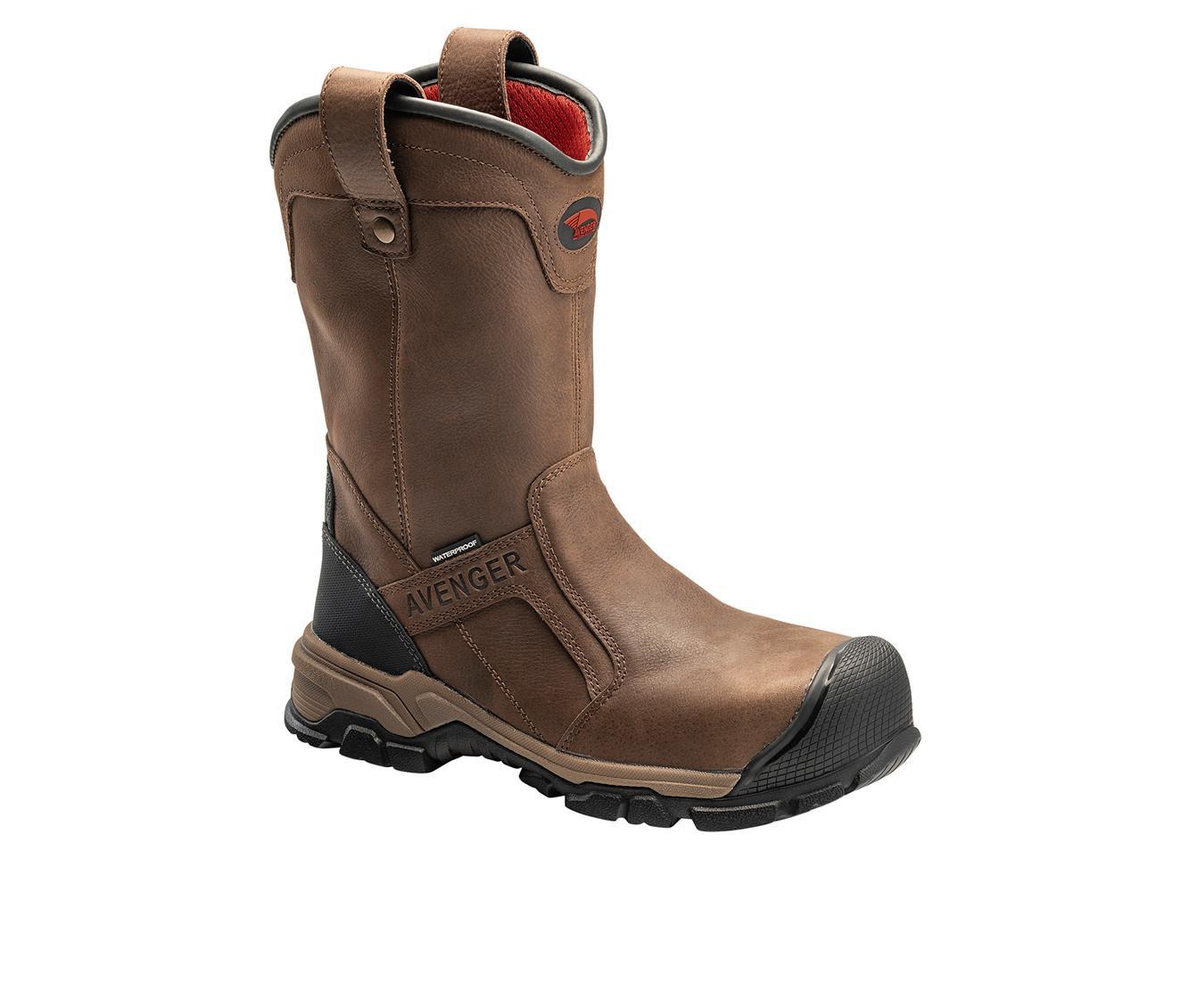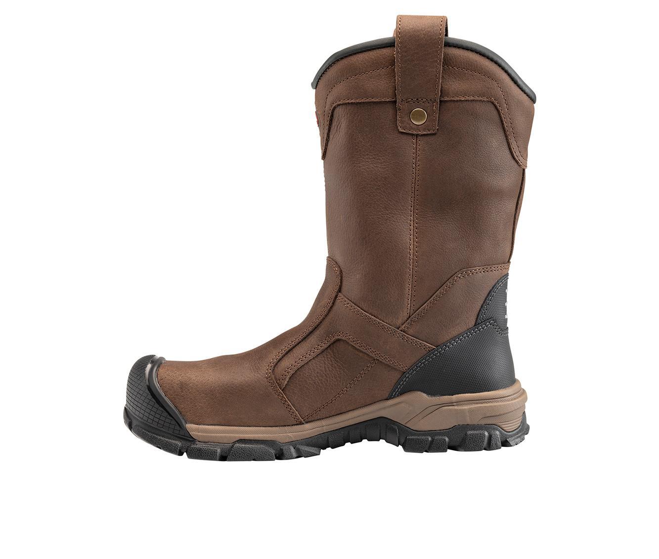 This pull-on work boot features a rugged leather upper with reinforced stitching and overlay panels for added durability. Dual side loops at the collar make it easy to put on, while the high shaft provides extended coverage and protection. The outsole is built with a deeply treaded pattern for solid traction in demanding environments, and the interior is softly lined for comfort during long shifts.