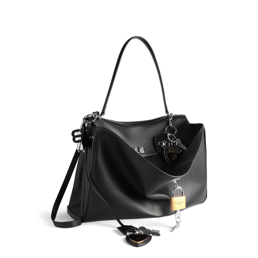 Balenciaga | Automobili Lamborghini Rodeo Handbag Large in black smooth calfskin with charms, aged-silver hardware