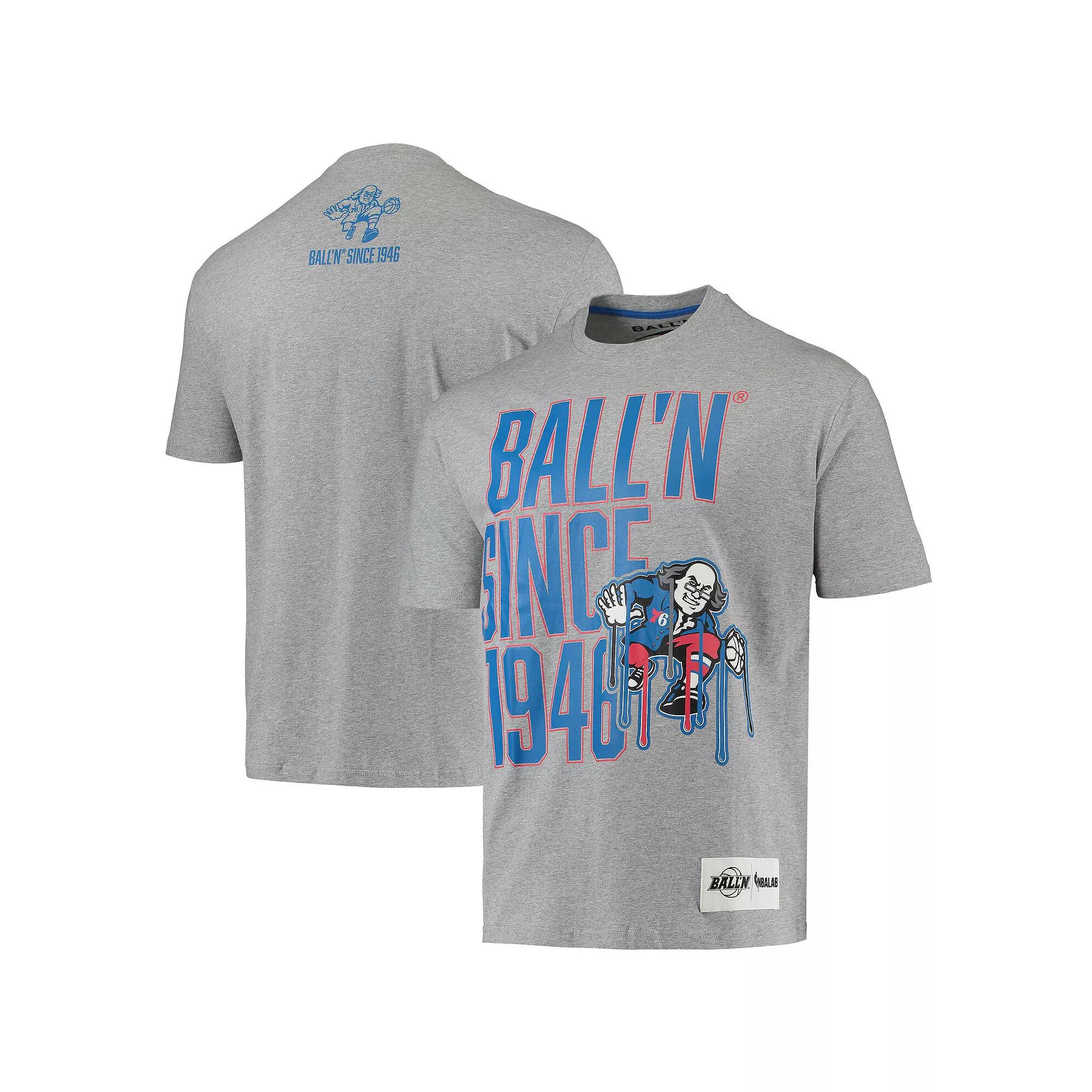 This comfortable shirt is a perfect representation of longstanding Philadelphia 76ers fandom. Its an athletic fitting shirt crafted with a blend of cotton and spandex, giving it just the right amount of stretchiness. Big and bold Philadelphia 76ers graphics are the highlight of this tee, which makes it the perfect focal point for a stellar game day ensemble.This comfortable shirt is a perfect representation of longstanding Philadelphia 76ers fandom. Its an athletic fitting shirt crafted with a blend of cotton and spandex, giving it just the right amount of stretchiness. Big and bold Philadelphia 76ers graphics are the highlight of this tee, which makes it the perfect focal point for a stellar game day ensemble.PRODUCT FEATURESBrand: BALLNCrew neckImportedMachine wash with garment inside out, tumble dry lowMaterial: 95% Cotton/5% SpandexOfficially licensedScreen print graphicsShort sleeveTagless CollarWoven tag Color: Grey. Gender: male. Age Group: adult.