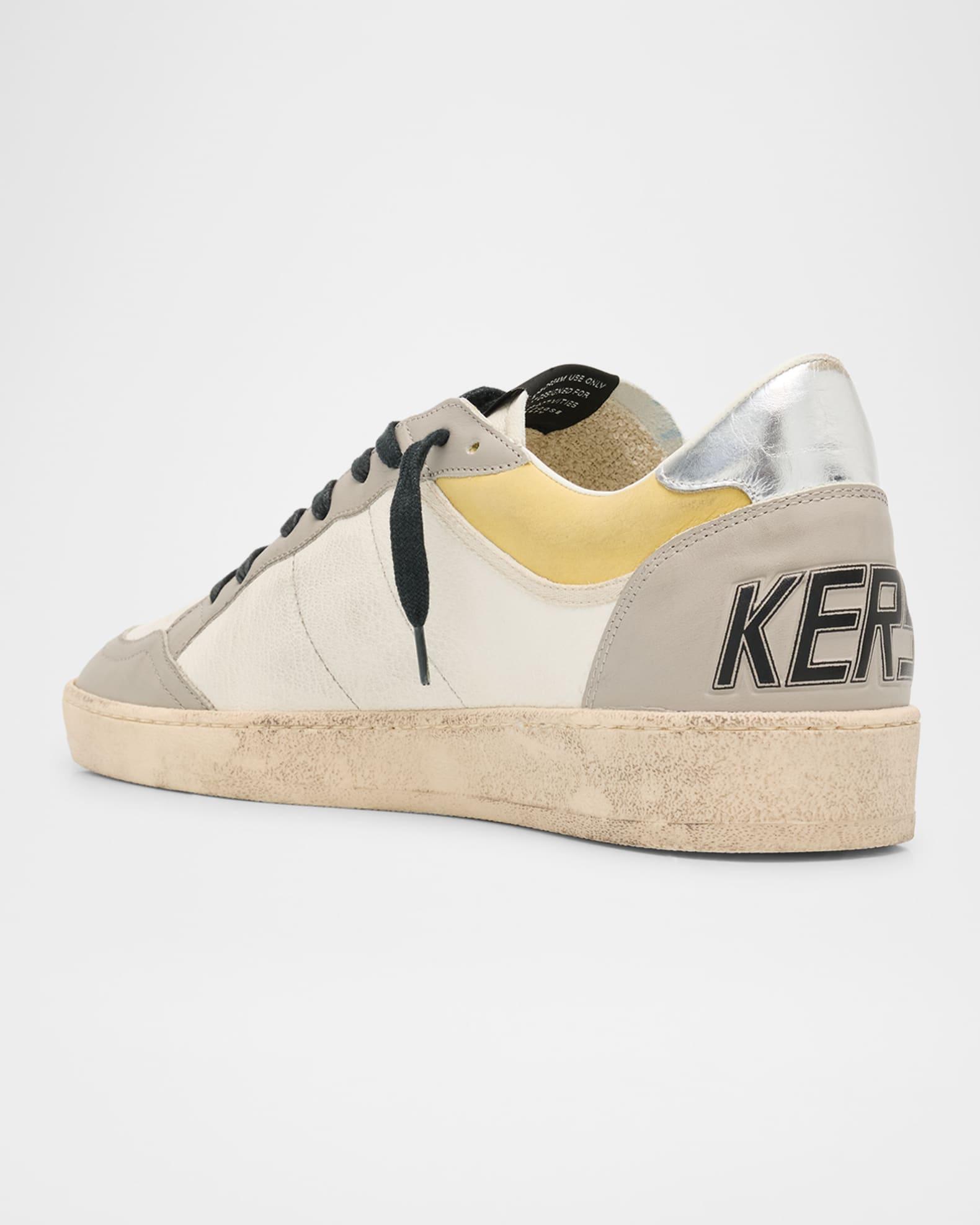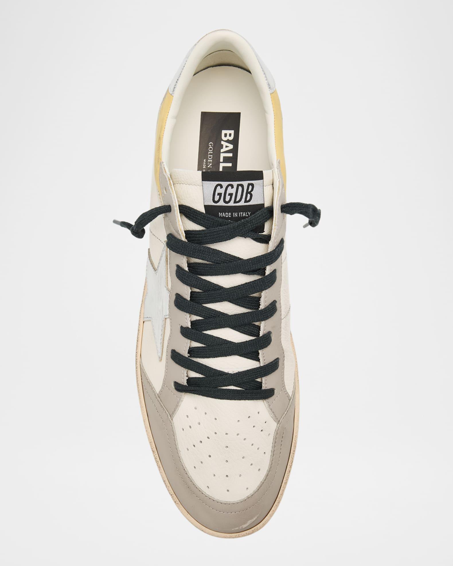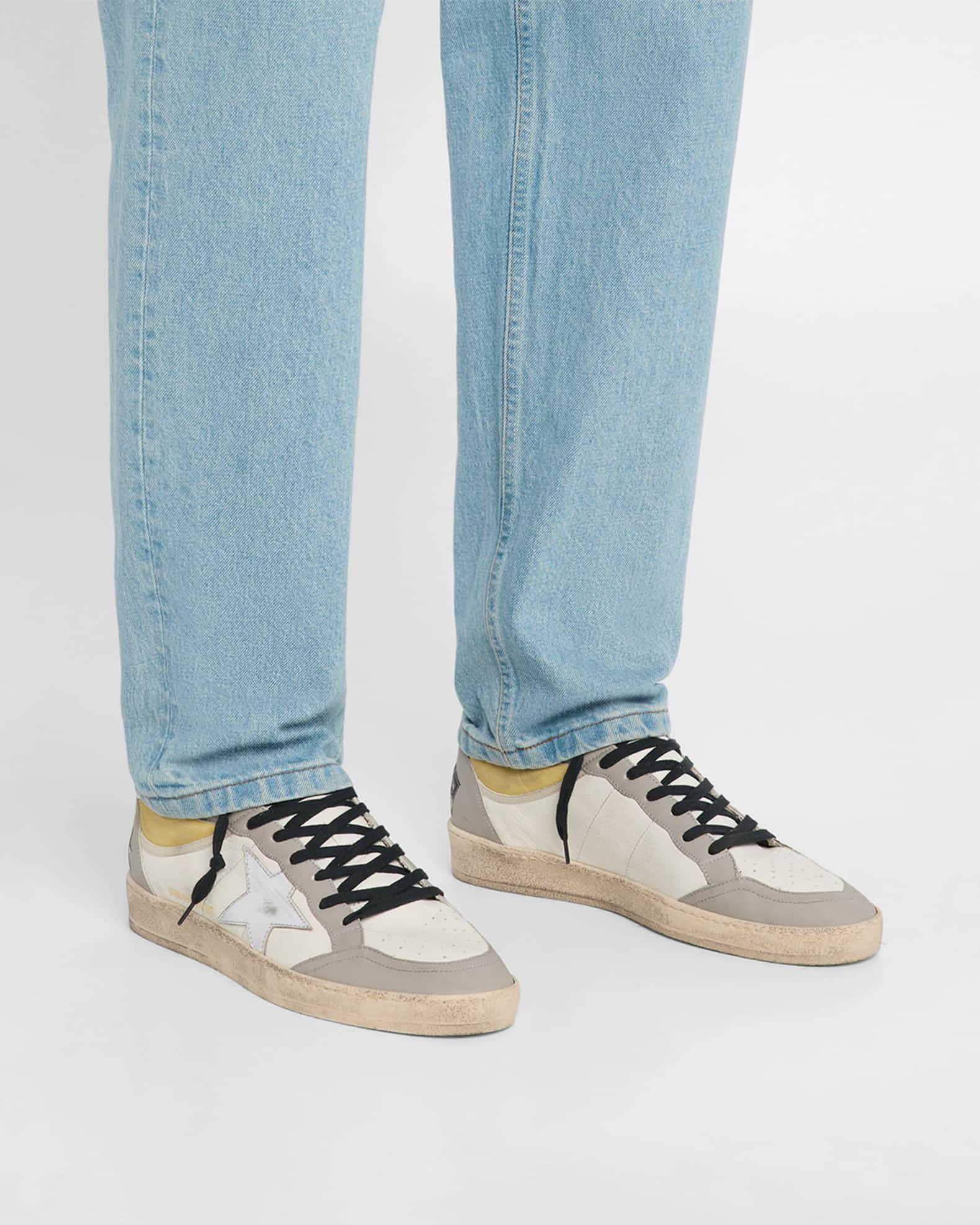 Exclusively ours. Golden Goose "Ballstar" low-top sneakers in metallic and multi-tone goat leather Flat heel Perforated round toe Lace-up vamp Logo label at tongue Padded collar Foiled logo lettering at side Signature star appliqué on the side Cotton/leather/nylon/polyester/viscose lining Signature stained sole Rubber outsole Made in Italy