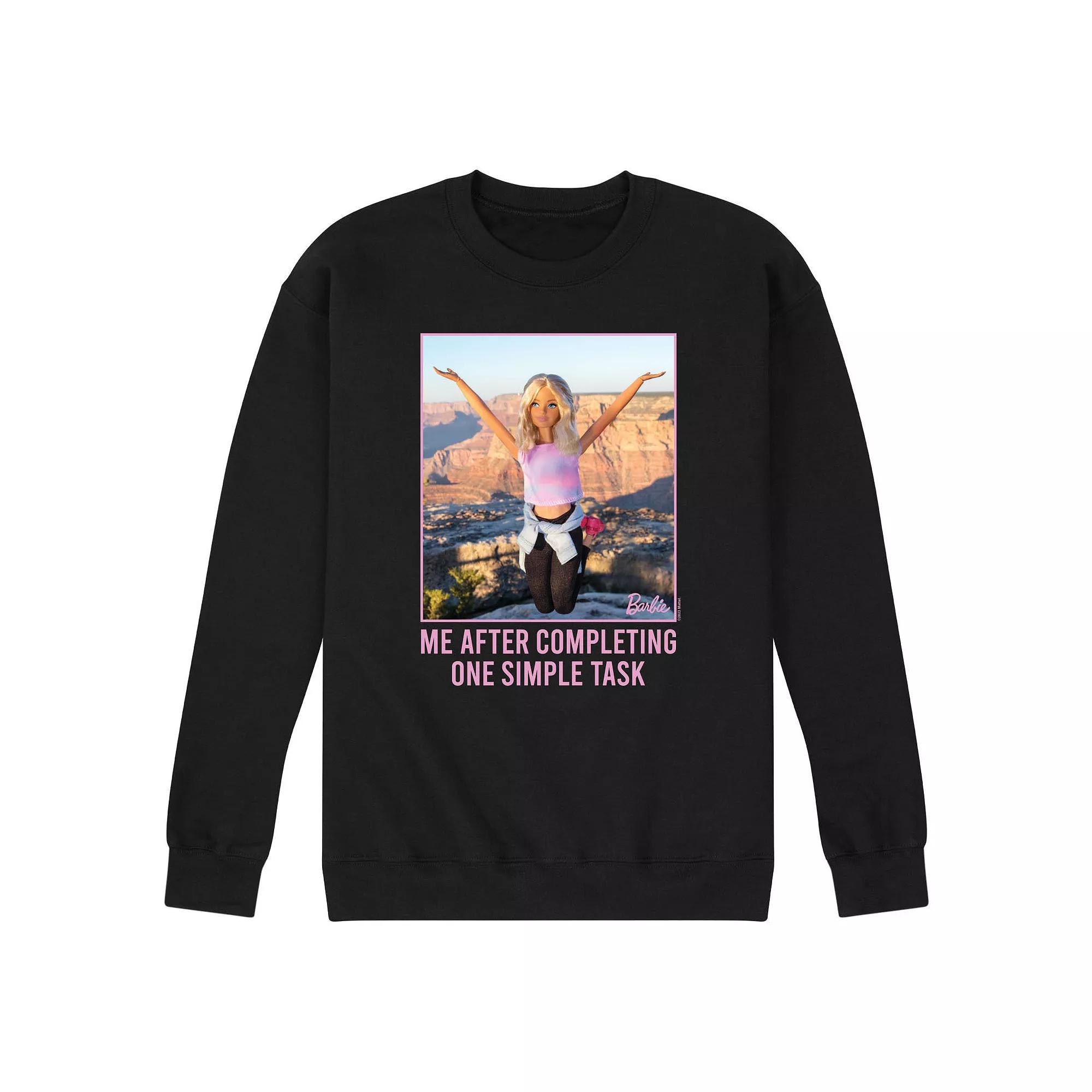 Keep an eye on style with this mens Barbie One Simple Task Fleece Sweatshirt. BARBIE and associated trademarks and trade dress are owned by, and used under license from, Mattel. 2023 Mattel. FEATURES Crewneck Long sleeveFABRIC & CARE Cotton/Polester Machine wash Imported Size: XXL. Color: Black. Gender: male. Age Group: adult. Pattern: Graphic.