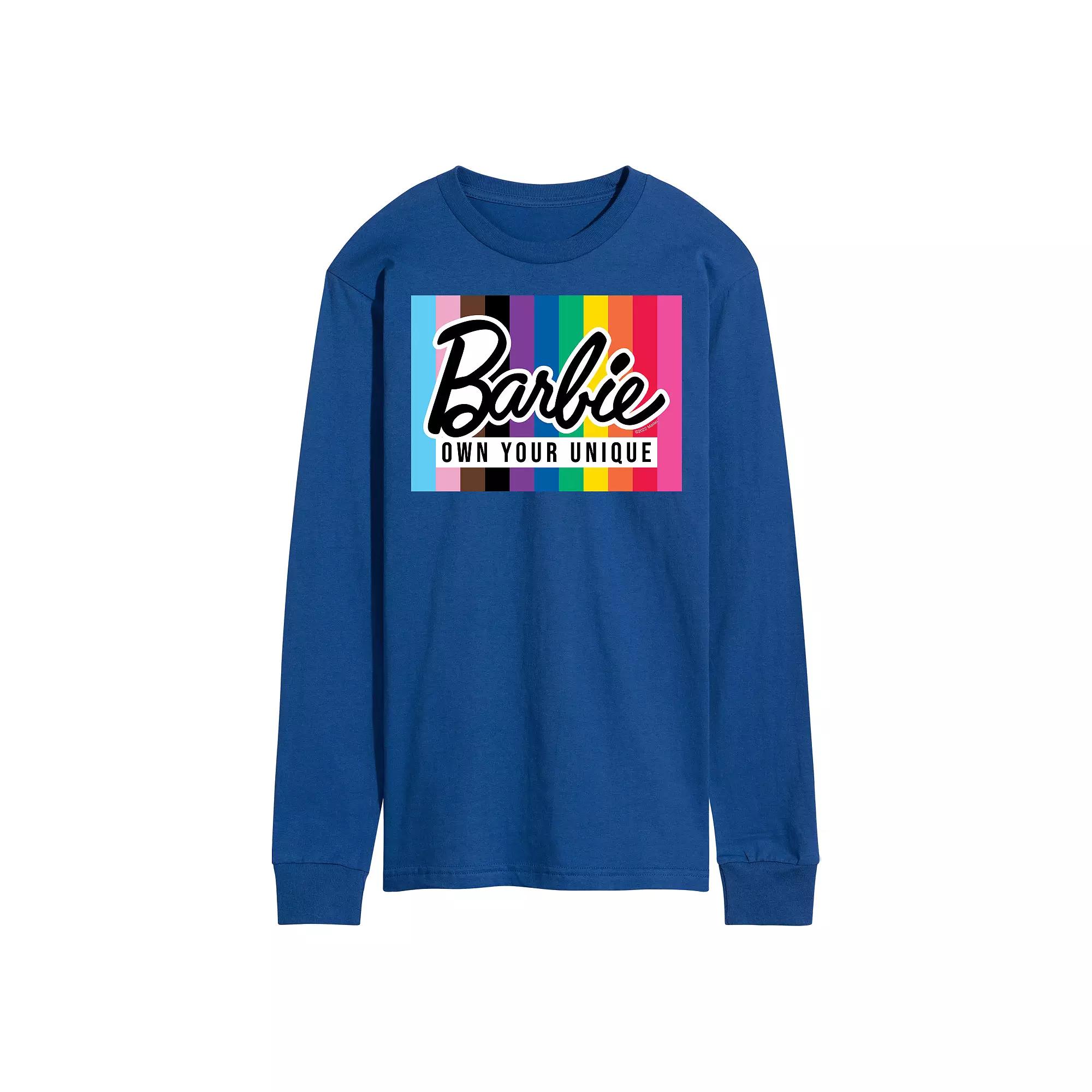 Show off your unique style in this Mens Barbie Own Your Unique Long Sleeve Graphic Tee. FEATURES Crewneck Long sleeveFABRIC & CARE Solid: cotton; Heather: cotton, polyester Machine wash Imported Size: XL. Color: Med Blue. Gender: male. Age Group: adult.