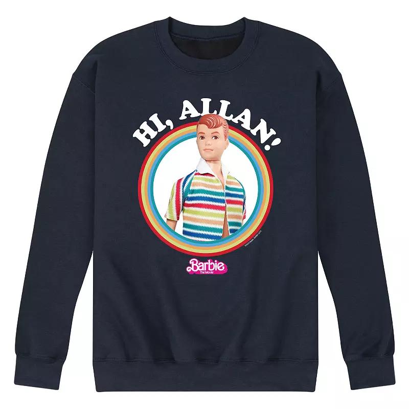 Add fun style to your casual wardrobe with this Mens Barbie Theatrical Hi Allan Fleece Sweatshirt. Add fun style to your casual wardrobe with this Mens Barbie Theatrical Hi Allan Fleece Sweatshirt. FEATURES Crewneck Long sleeveFABRIC & CARE Cotton, polyester Machine wash Imported Color: Orange. Gender: male. Age Group: adult. Material: Polyester|Cotton.