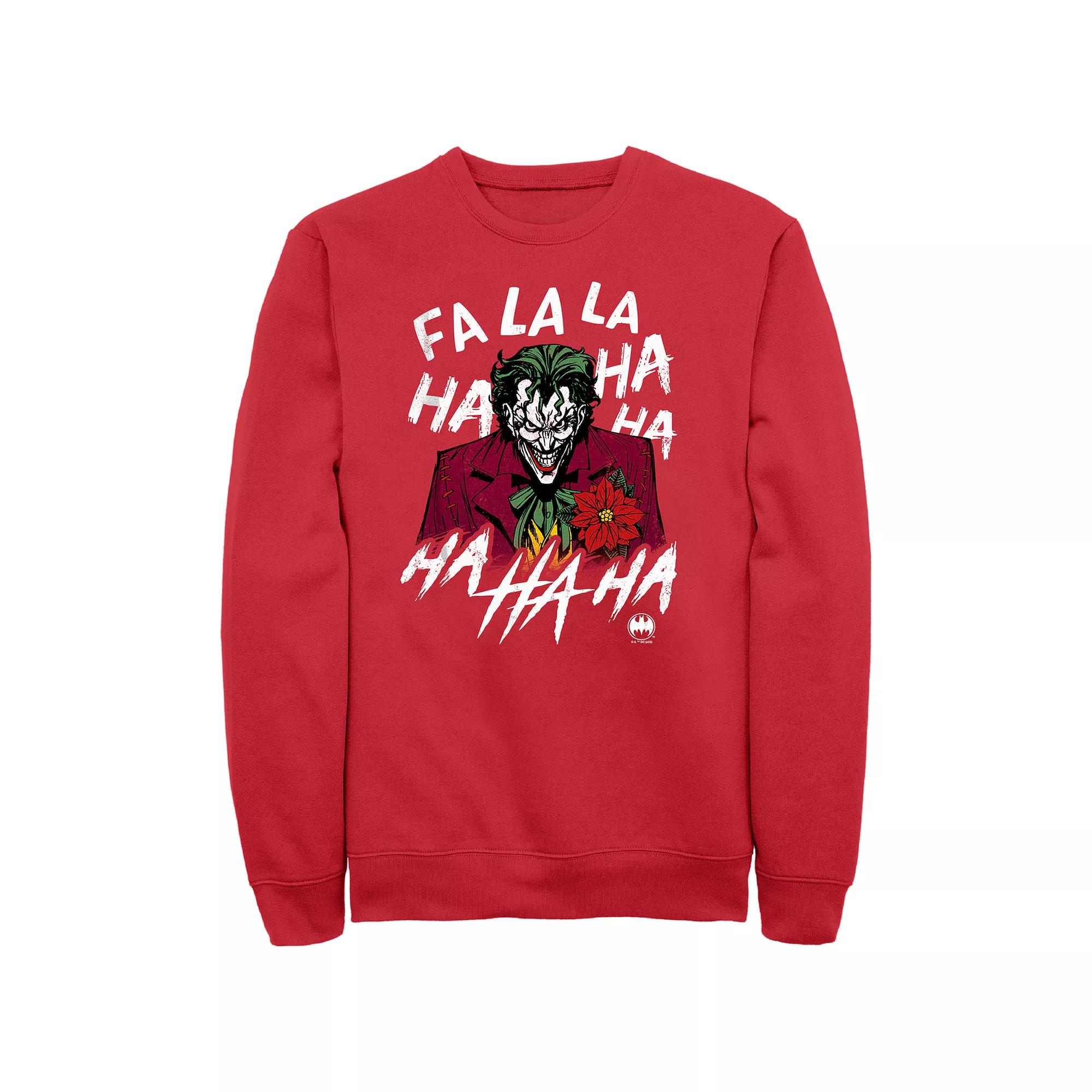 Hell love the look and feel of this Mens Batman The Joker Fa La La Ha Ha Ha Graphic Fleece. Hell love the look and feel of this Mens Batman The Joker Fa La La Ha Ha Ha Graphic Fleece. FEATURES Crewneck Long SleevesFABRIC & CARE Cotton/Polyester Machine wash Imported Color: Red. Gender: male. Age Group: adult. Material: Cotton Blend.