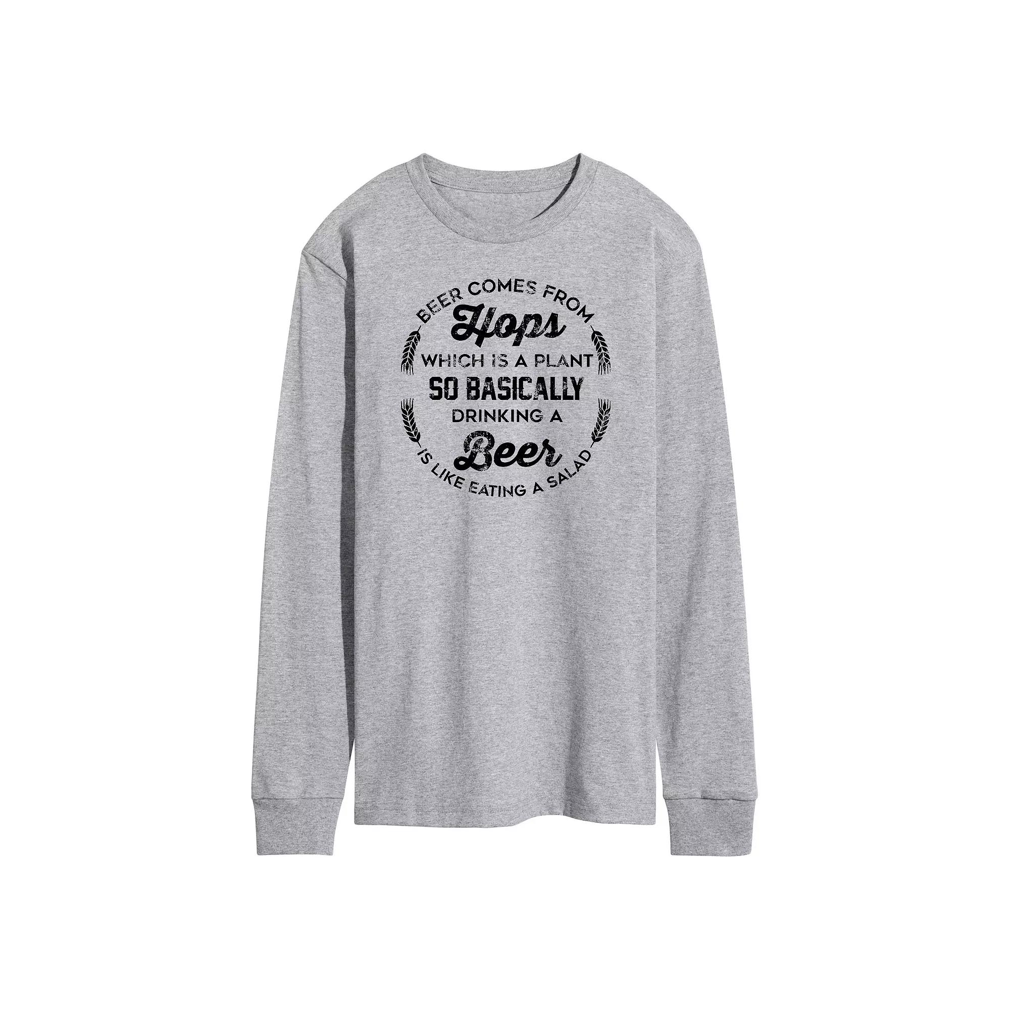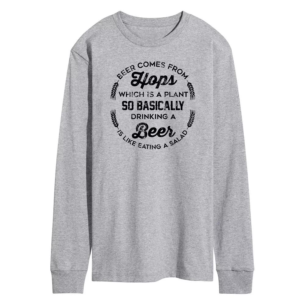 Update your casual wardrobe with this Mens Beer Comes From Hops Long Sleeve Graphic Tee. Update your casual wardrobe with this Mens Beer Comes From Hops Long Sleeve Graphic Tee. FEATURES Crewneck Long sleevesFABRIC & CARE Solid: cotton Heather: cotton, polyester Machine wash Imported Size: XXL. Color: Med Grey. Gender: male. Age Group: adult. Material: Polyester|Cotton.
