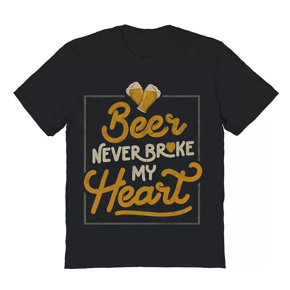 Gift your Valentine or yourself this Men's Beer Never Broke My Heart Valentine's Day Graphic Tee. It gives stylish yet simple vibes that he'll love!FEATURES Crewneck Short sleeveFABRIC & CARE Cotton Machine wash Imported Color: Black. Gender: male. Age Group: adult.