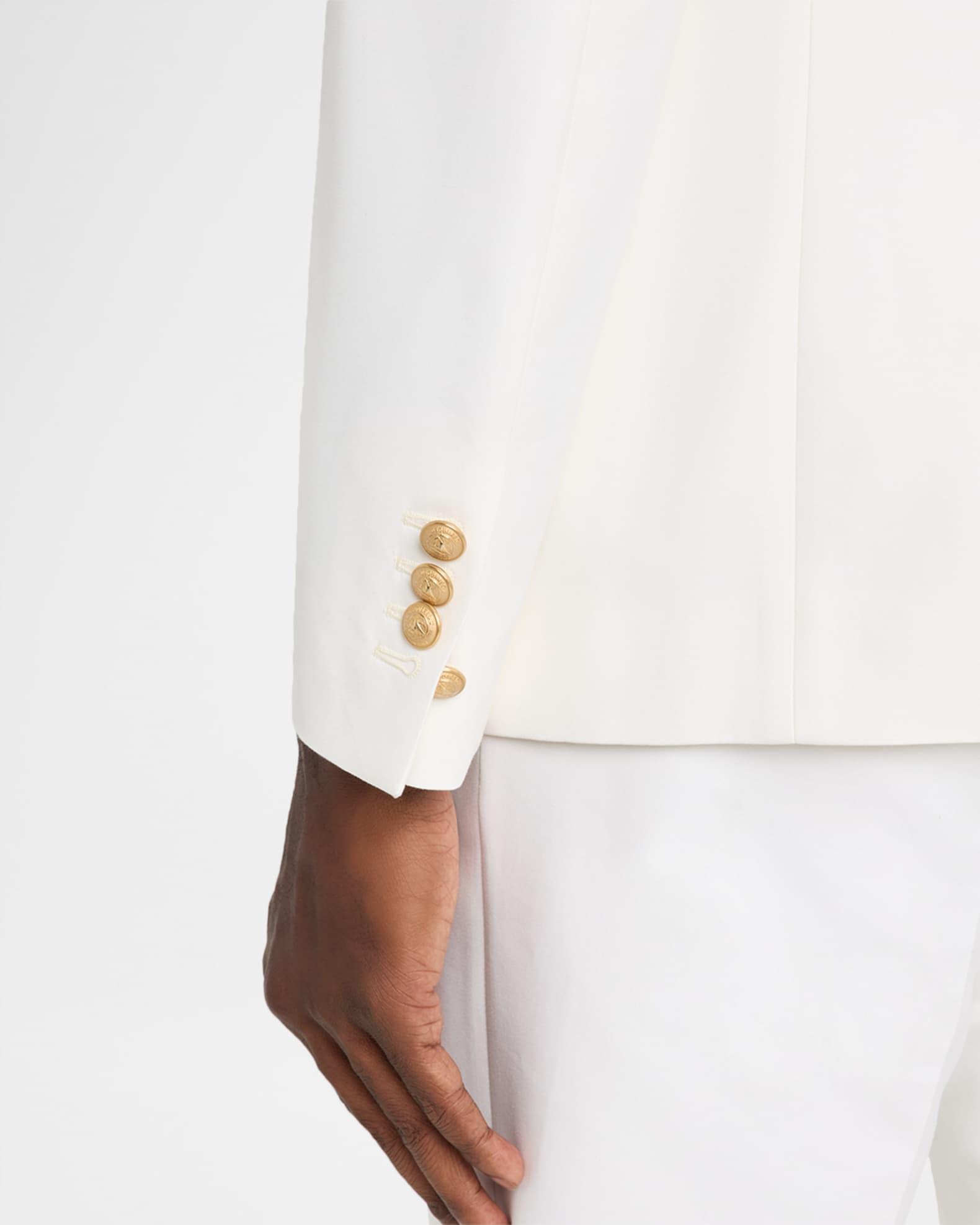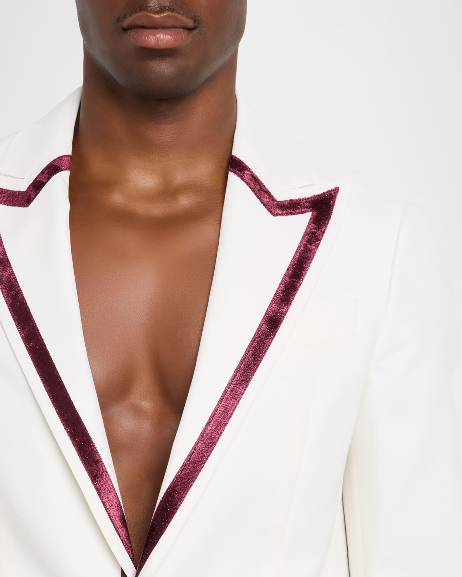 Dsquared2 sport jacket in cotton and silk, accented with gold-tone buttons and contrast velvet trim Peak lapels Single-breasted front Chest welt pocket Hip flap pockets Internal breast pocket Four-button cuffs Cotton/silk Lining: Cotton/polyester/viscose Dry clean Made in Italy