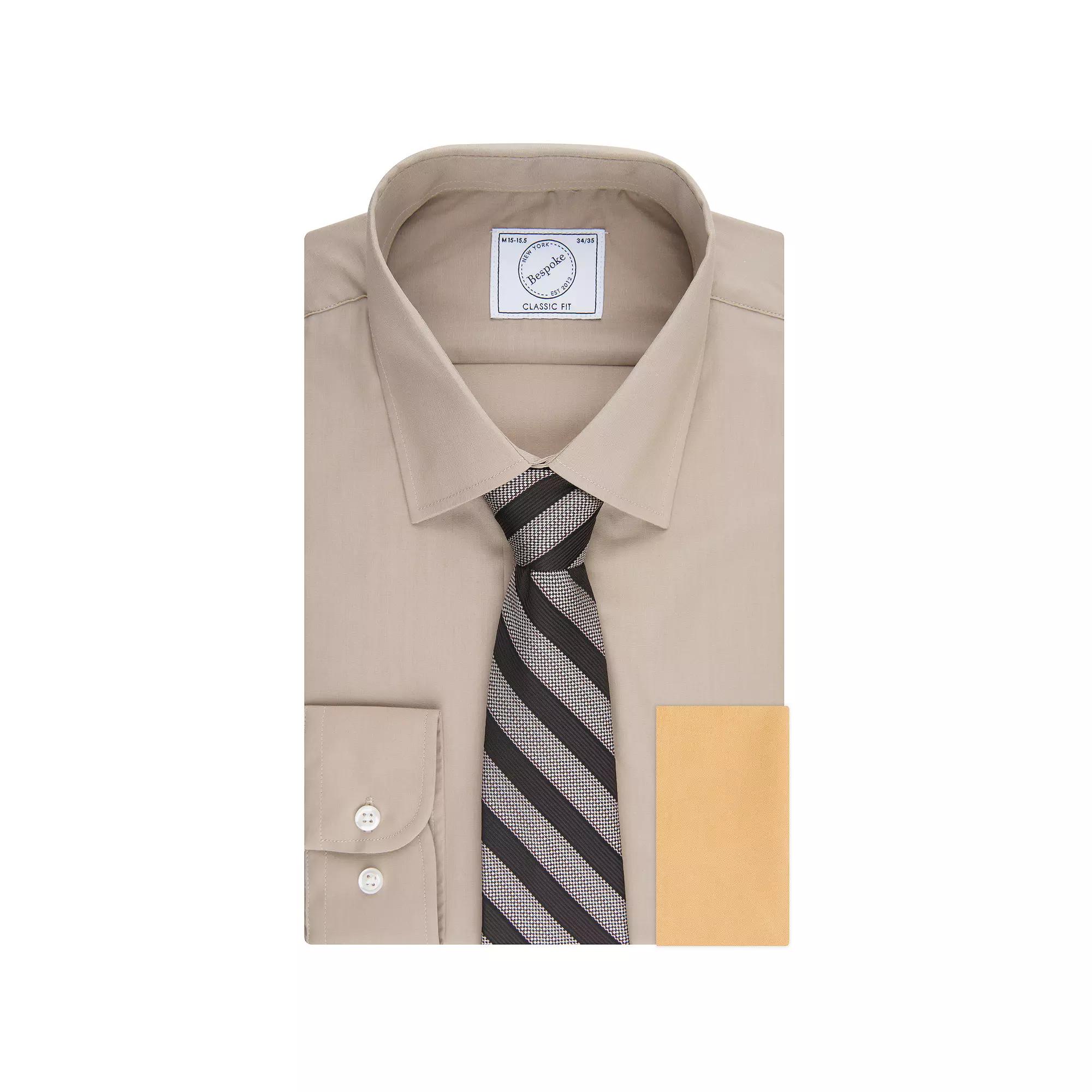 Feel-good fashion. This mens Bespoke dress shirt, tie and pocket square set makes it easy to look and feel great at the office or any special event. Feel-good fashion. This mens Bespoke dress shirt, tie and pocket square set makes it easy to look and feel great at the office or any special event. Set includes: dress shirt, tie and pocket square for your jacket pocket Ideal for gifting Shirt has one chest pocketFIT & SIZING Dress shirt: classic fitFABRIC & CARE Dress shirt: cotton/polyester, machine wash Tie, pocket square: polyester, dry clean Imported Size: L-36/37. Color: Beig/Khaki. Gender: male. Age Group: adult. Material: Polyester|Cotton.
