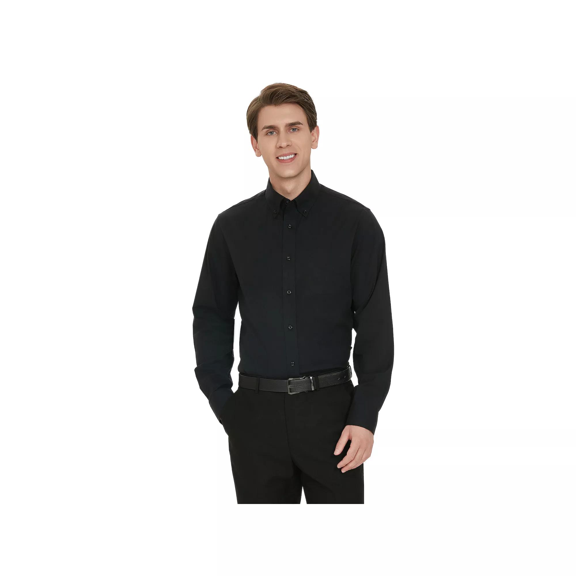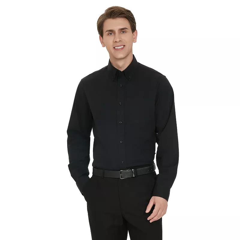 Add a little class to your daily wardrobe with this men's Bespoke oxford classic button up shirt.FEATURES Button-front closure Cuffed Rounded hemline One exterior pocket at front Long sleeve Button-down collarFIT & SIZING Classic fitFABRIC & CARE Cotton, polyester, spandex Machine wash warm with like colors ImportedSUSTAINABILITY FEATURES Tested for harmful substances STANDARD 100 by OEKO-TEX® CERTIFIED Certification No. 23.HCN.54171 Testing Institute: Hohenstein Textile Testing Institute www.oeko-tex.com/standard100 Size: L-34/35. Color: Black. Gender: male. Age Group: adult.