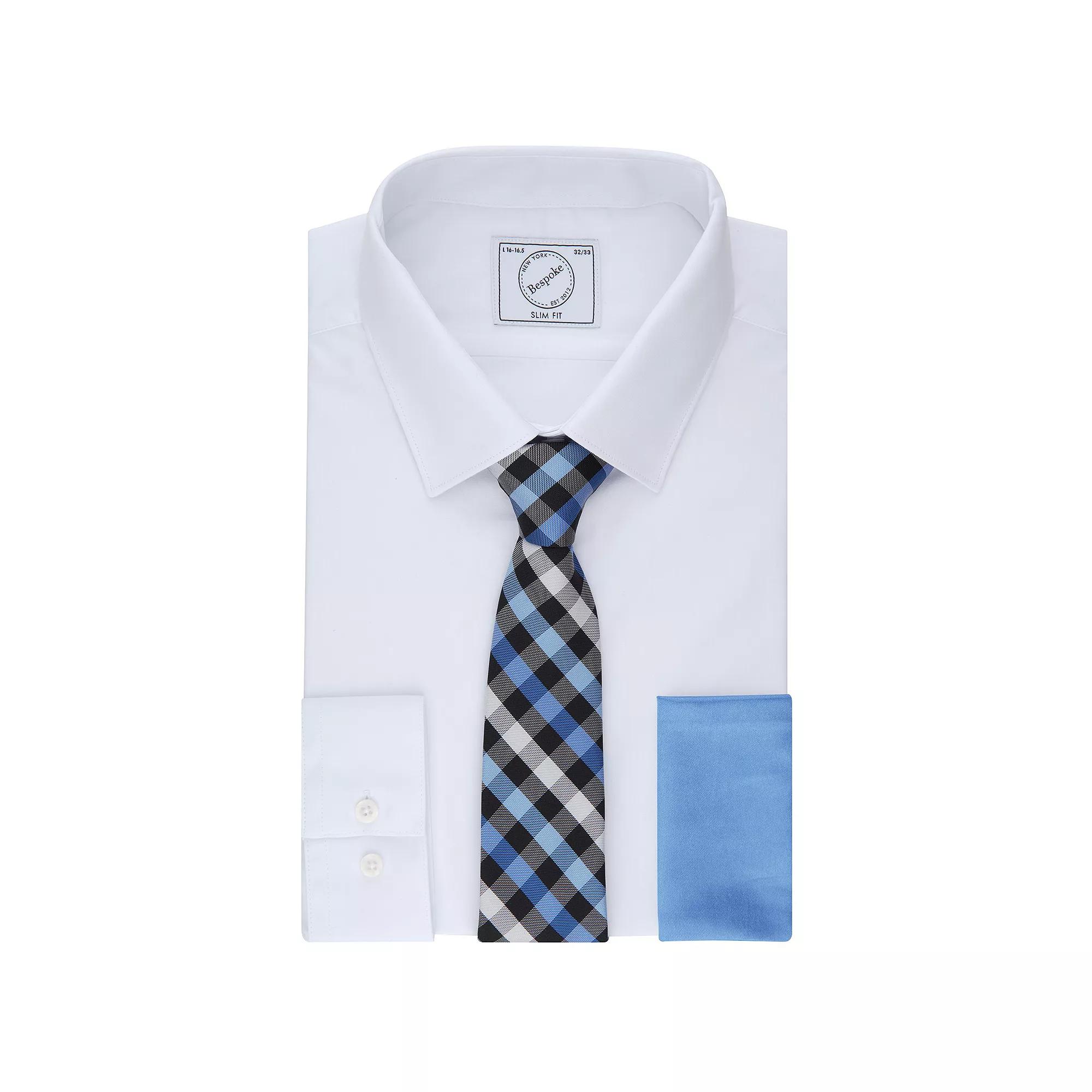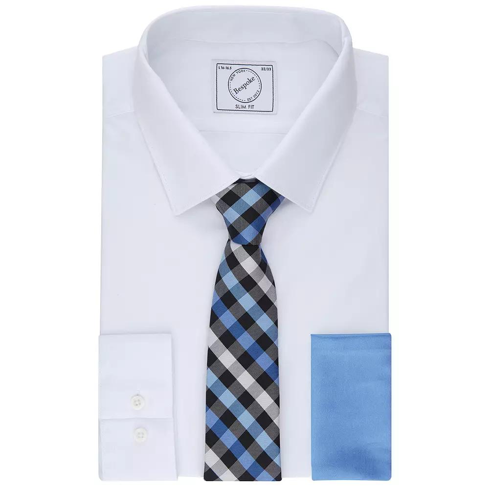 Impress in this Bespoke dress shirt and tie set. Featuring a slim-fit dress shirt and tie, this mens boxed set from Bespoke adds standout style to your office or special-event attire. Includes: dress shirt, tie and pocket square Dress shirt: stretch collar, long sleeves Ideal for giftingFIT & SIZING Slim fitFABRIC & CARE Dress shirt: cotton/polyester, machine wash Tie and pocket square: polyester, dry clean Imported Size: M-32/33. Color: Charcoal. Gender: male. Age Group: adult. Pattern: Solid. Material: Polyester|Cotton.