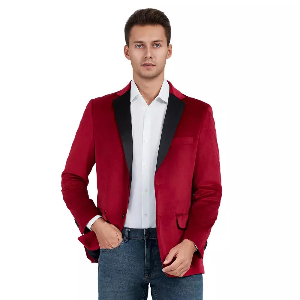 A luxurious velvet construction makes this mens Bespoke Slim Fit Velvet Sport Coat that perfect way to make a statement at your next event. Click on this MENS GUIDE to find the perfect fit and more! A luxurious velvet construction makes this mens Bespoke Slim Fit Velvet Sport Coat that perfect way to make a statement at your next event. Click on this MENS GUIDE to find the perfect fit and more! FEATURES Button closure Long sleeves 3 functional pocketsFIT & SIZING Slim fitFABRIC & CARE Polyester Dry clean only Imported Color: Red Velvet. Gender: male. Age Group: adult.