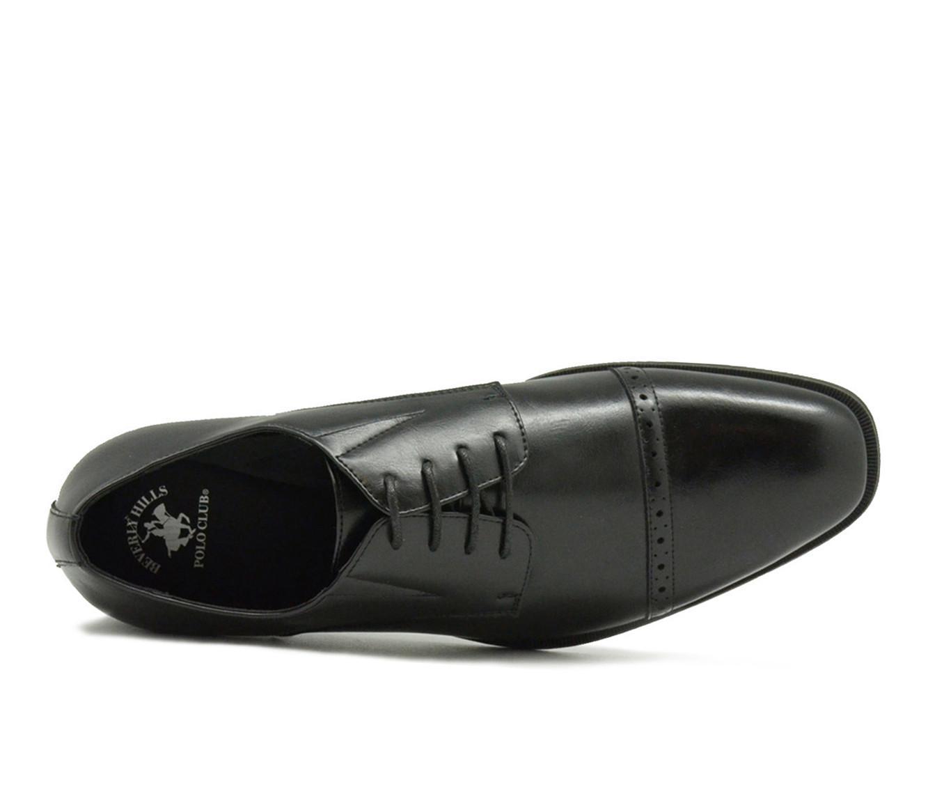 Elevate your formal style with this sophisticated men's dress shoe. The Beverly Hills Polo Club Damien. Featuring a smooth synthetic upper and classic cap toe with refined perforation details, it blends timeless design with modern comfort. The lace-up closure, enhanced by discreet elastic inserts, offers a custom fit that's easy to slip into, ensuring all-day comfort without sacrificing elegance. Perfect for the boardroom or special occasions, this shoe effortlessly complements your tailored look.