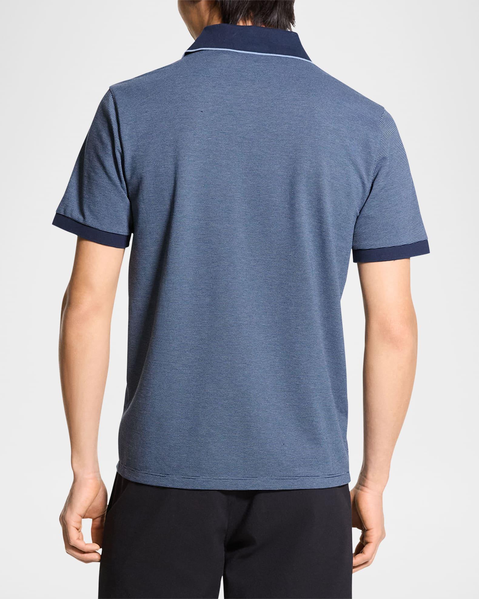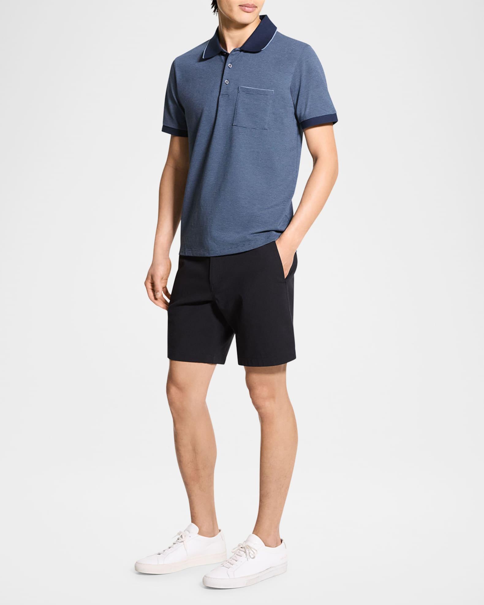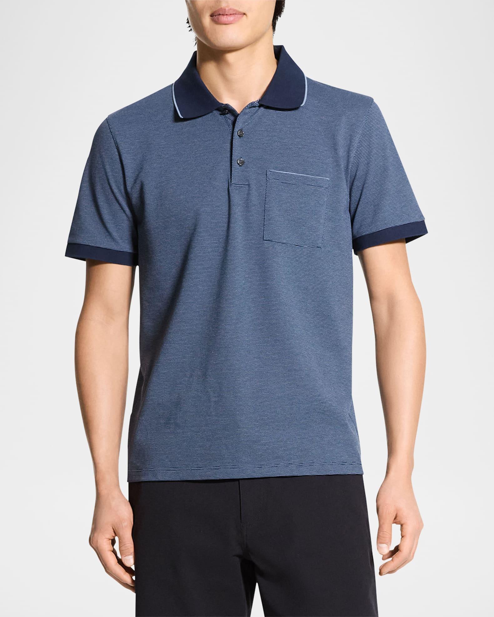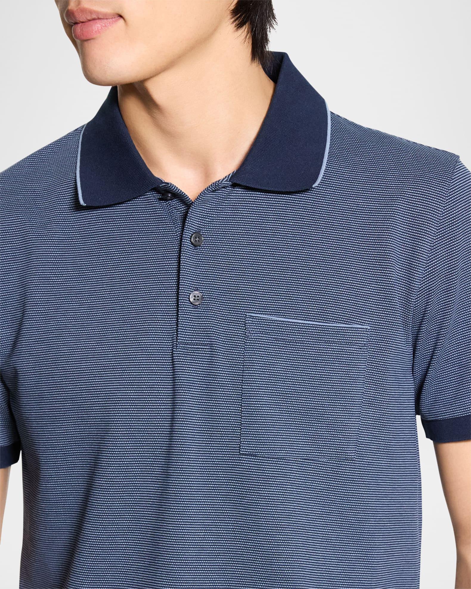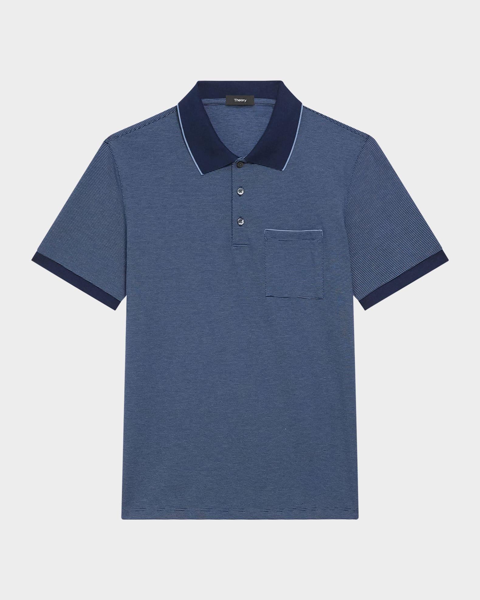 Theory polo shirt in birdseye-woven cotton pique for added visual interest Contrasting collar and cuffs Functional chest patch pocket Spread collar with tipping Short sleeves Ribbed cuffs Pullover style Classic fit Cotton Machine wash cold, tumble dry, wash inside out Made in Peru