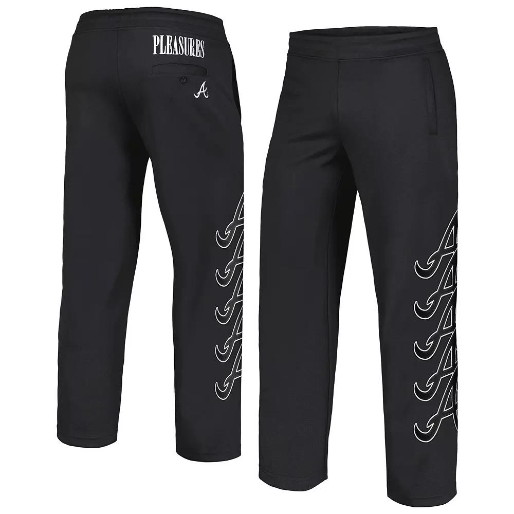 These Pitcher Track pants put your fandom at the forefront with a dash of style. Unmistakable Atlanta Braves graphics and details create a spirited look fit for multiple occasions. Side and rear pockets and an adjustable waist provide ideal functionality.These Pitcher Track pants put your fandom at the forefront with a dash of style. Unmistakable Atlanta Braves graphics and details create a spirited look fit for multiple occasions. Side and rear pockets and an adjustable waist provide ideal functionality.PRODUCT FEATURESOne rear pocket with single button closureInseam on size M measures approx. 28Elastic waistbandMachine wash, line dryImportedEmbroidered graphicsMaterial: 100% PolyesterOfficially licensedTwo side pocketsEmbroidered fabric appliqueBrand: PLEASURES Size: 2XL. Color: Black. Gender: male. Age Group: adult.