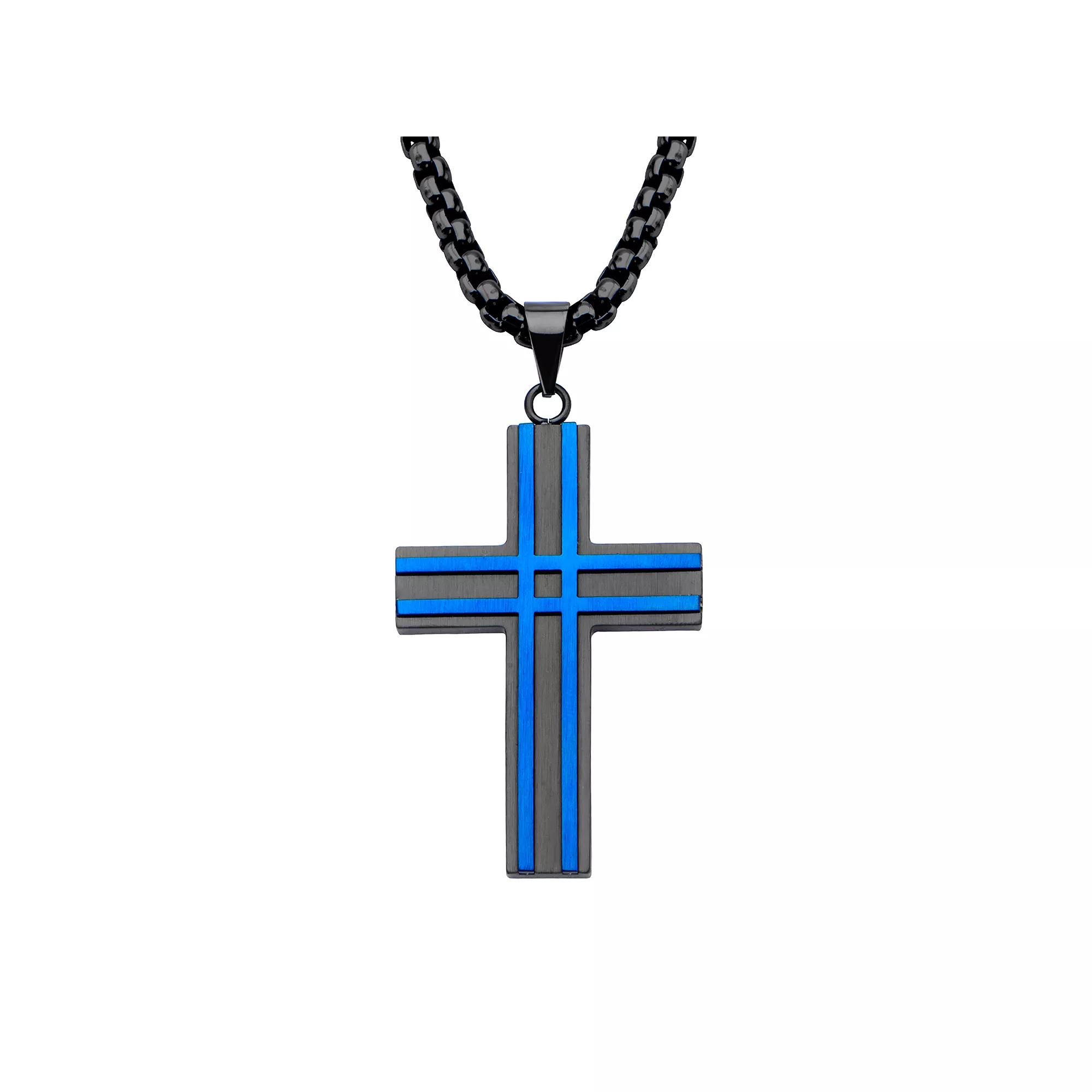 Achieve an exceptionally stylish look with this men's cross necklace. PENDANT DETAILS Chain length: 24 in. Chain type: Venetian box Clasp: lobster-claw Metal: stainless steel Plating: ion Finish: matte Packaging: boxed Size: 24". Color: Multicolor. Gender: male. Age Group: adult.