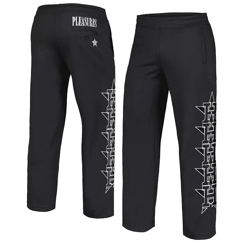 These Pitcher Track pants put your fandom at the forefront with a dash of style. Unmistakable Houston Astros graphics and details create a spirited look fit for multiple occasions. Side and rear pockets and an adjustable waist provide function.These Pitcher Track pants put your fandom at the forefront with a dash of style. Unmistakable Houston Astros graphics and details create a spirited look fit for multiple occasions. Side and rear pockets and an adjustable waist provide function.PRODUCT FEATURESElastic waistbandOne rear pocket with single button closureMachine wash, line dryMaterial: 100% PolyesterTwo side pocketsImportedInseam on size M measures approx. 28Embroidered fabric appliqueEmbroidered graphicsBrand: PLEASURESOfficially licensed Size: 2XL. Color: Black. Gender: male. Age Group: adult.