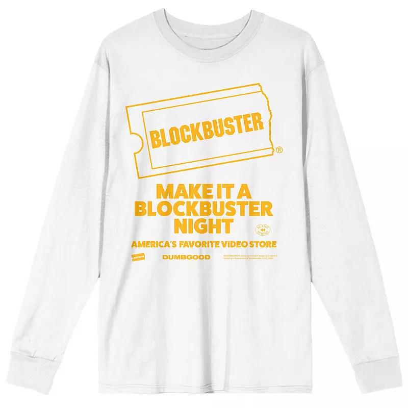 Give your wardrobe a refresh with this Mens Blockbuster Make It a Blockbuster Night Long Sleeve Graphic Tee. Give your wardrobe a refresh with this Mens Blockbuster Make It a Blockbuster Night Long Sleeve Graphic Tee. FEATURES Crewneck Long sleeveFABRIC & CARE Cotton Machine wash Imported Size: XXL. Color: White. Gender: male. Age Group: adult.