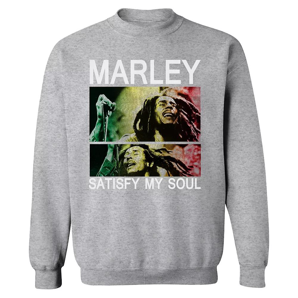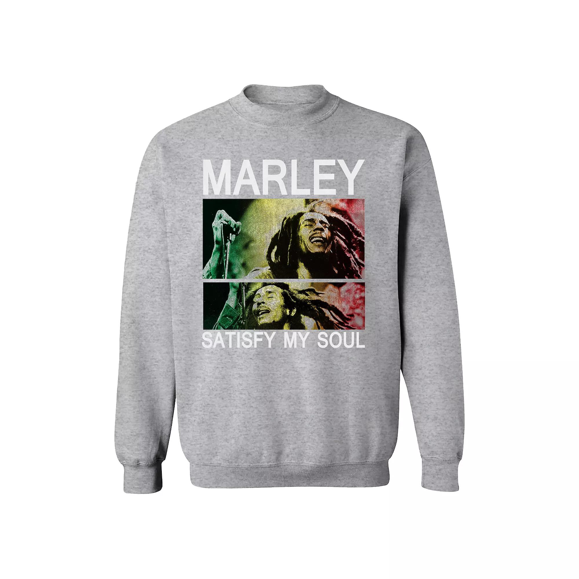 You won't worry about a thing in this Bob Marley Satisfy My Soul graphic sweatshirt. You won't worry about a thing in this Bob Marley Satisfy My Soul graphic sweatshirt. Crewneck Long sleevesFABRIC & CARE Cotton, polyester Machine wash Imported Color: Grey. Gender: male. Age Group: adult. Material: Cotton Blend.