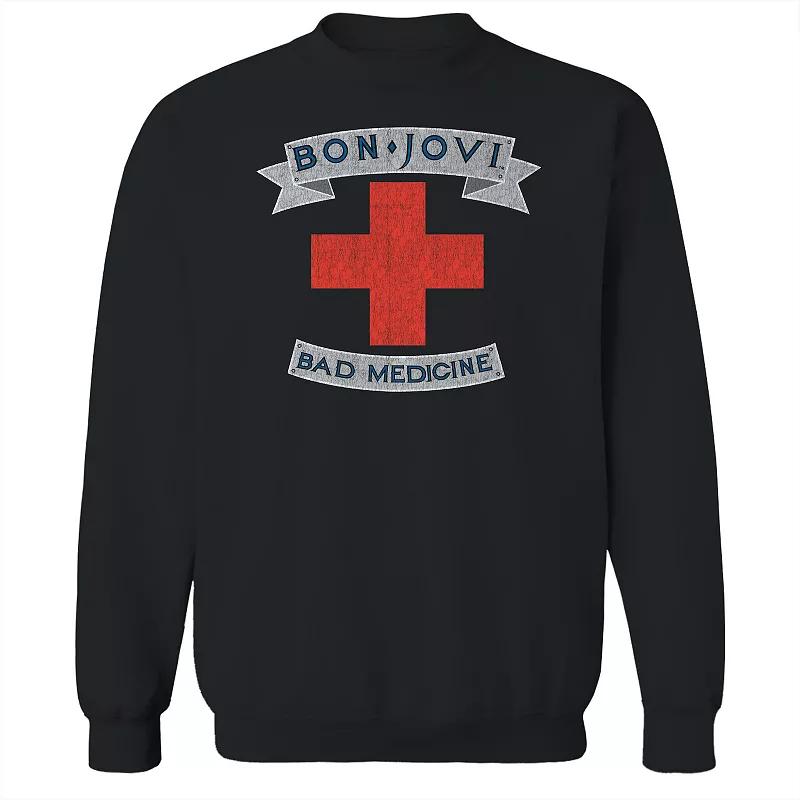 Keep the faith with this Men's Bon Jovi Bad Medicine Graphic Crew Sweatshirt. Keep the faith with this Men's Bon Jovi Bad Medicine Graphic Crew Sweatshirt. FEATURES Crewneck Official Bon Jovi Merchandise. Long sleeveFIT & SIZING ClassicFABRIC & CARE Cotton, Fleece Machine wash Imported Size: XXL. Color: Black. Gender: male. Age Group: adult. Material: Fleece|Cotton.