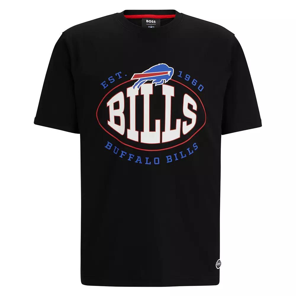 As part of an exclusive capsule collection, Hugo Boss collaborated with the NFL to craft these Buffalo Bills Trap T-Shirt. The unique Buffalo Bills graphics and detailed brand emblem give this piece and elevated feel to help you stand out in the sea of regular tees. This premium Buffalo Bills tee is constructed with comfort in mind making it perfect almost any occasion.As part of an exclusive capsule collection, Hugo Boss collaborated with the NFL to craft these Buffalo Bills Trap T-Shirt. The unique Buffalo Bills graphics and detailed brand emblem give this piece and elevated feel to help you stand out in the sea of regular tees. This premium Buffalo Bills tee is constructed with comfort in mind making it perfect almost any occasion.PRODUCT FEATURESOfficially licensedMachine wash, line dryBrand: BOSS X NFLWash inside outRegular fitBrand emblem near bottom hemImportedShort sleeveMaterial: 94% Cotton/6% ElastaneScreen print graphics Size: XL. Color: Black. Gender: male. Age Group: adult.