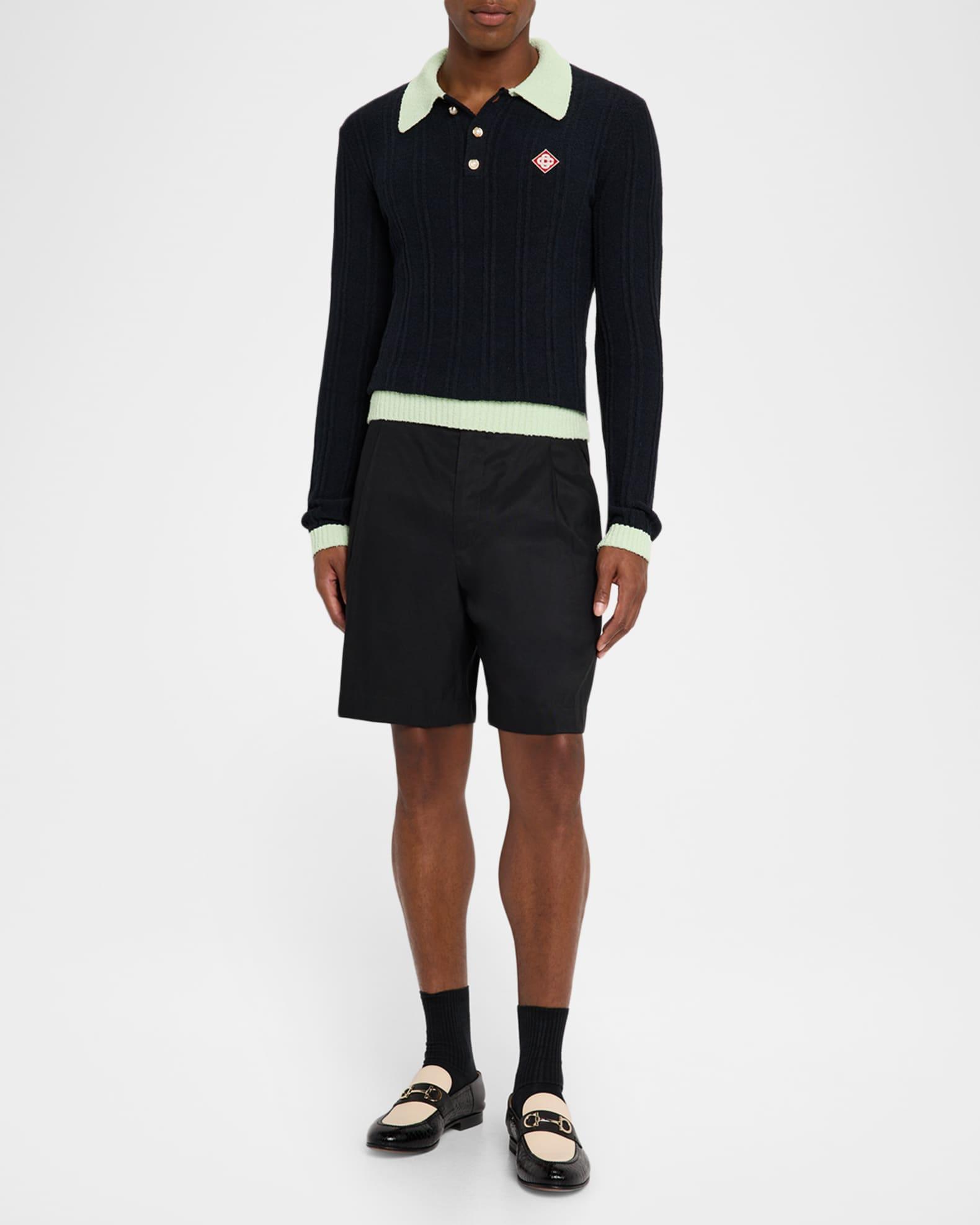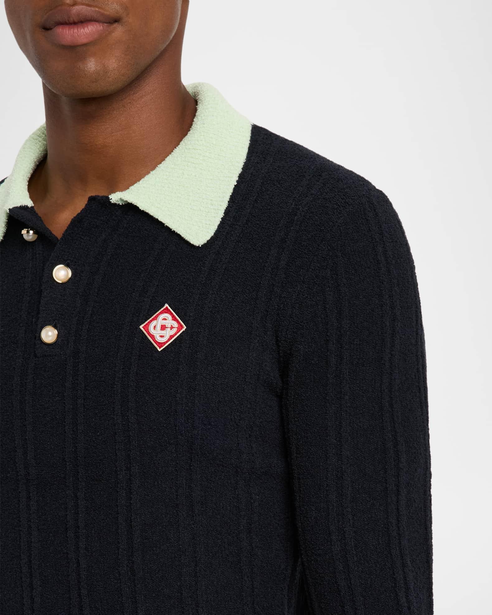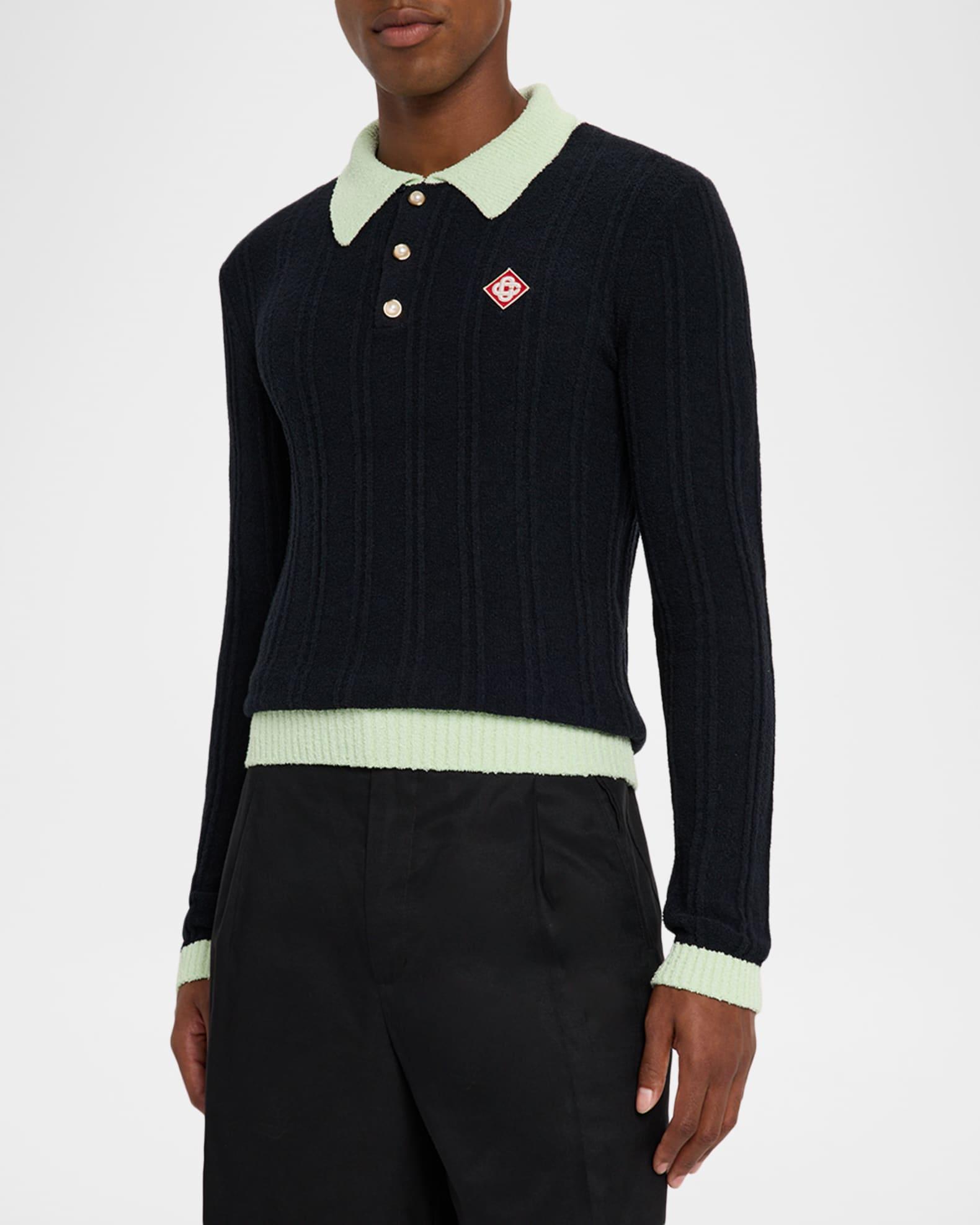 Men's Boucle Knit Long-Sleeve Polo Shirt