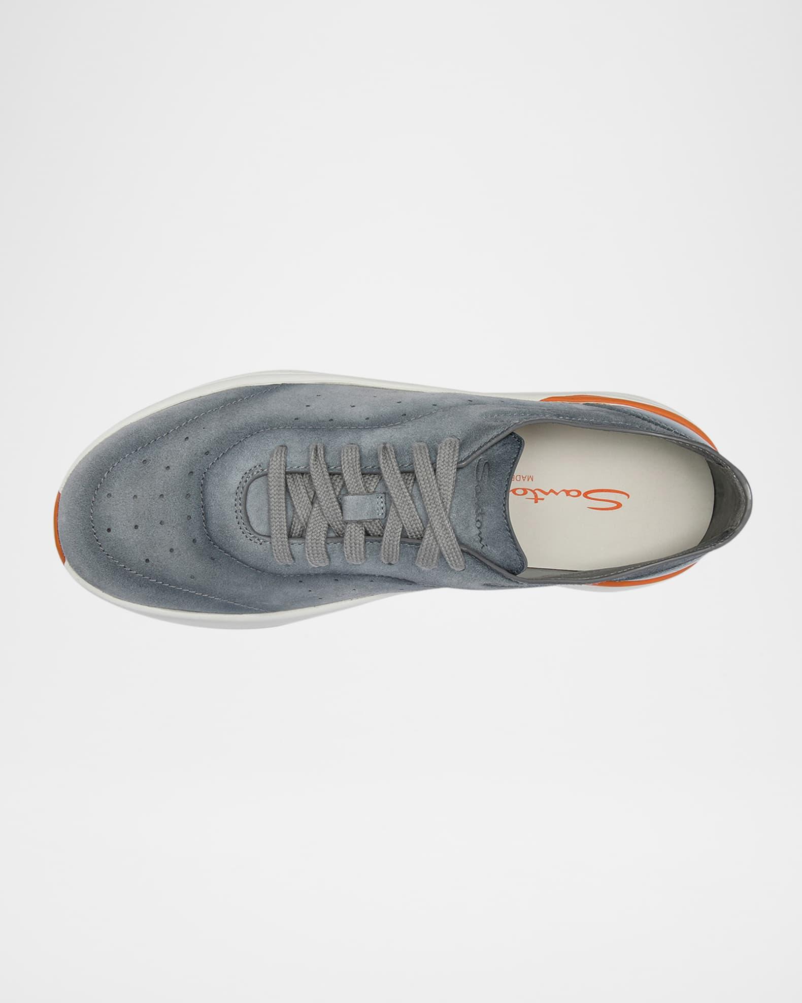 Santoni "Bounce" runner sneakers in lightweight suede Flat heel Reinforced round toe Lace-up vamp Suede lining Logo on the tongue and side Leather heel counter Rubber outsole Professional cleaning recommended Made in Italy