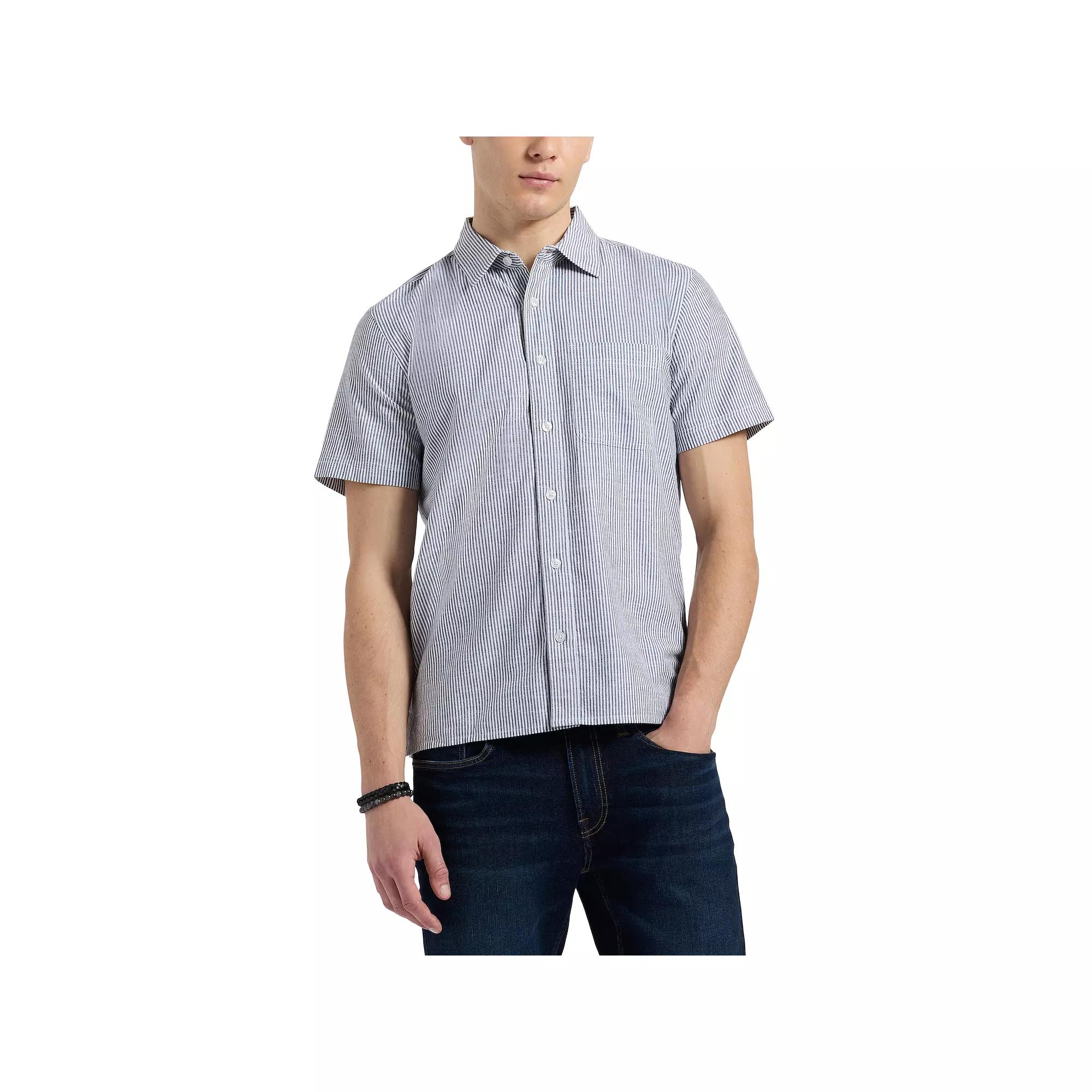 Warmer weather calls for this Mens Buffalo Jeans Woven Short Sleeve Button Down Shirt. Click on this MENS GUIDE to find the perfect fit and more!Warmer weather calls for this Mens Buffalo Jeans Woven Short Sleeve Button Down Shirt. Click on this MENS GUIDE to find the perfect fit and more!FEATURES Button front Short sleeves 1 chest flap pocket with button closure on right sideFIT & SIZING RegularFABRIC & CARE Cotton Machine wash Imported Size: XXL. Color: Dnu. Gender: male. Age Group: adult.